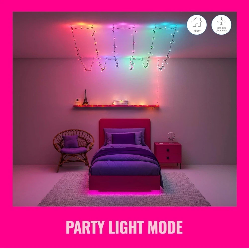 Elevate your festive décor with the WiZ LED Smart Fairy Lights, designed to bring a touch of magic to any space. These versatile lights are suitable for both indoor and outdoor settings, making them a perfect choice for year-round illumination. With a rainbow of multicolor options and dynamic modes, they synchronize to the beat of your music, creating an enchanting atmosphere for any occasion, from Christmas to everyday ambiance. Effortlessly control the lights via the app, selecting from a variety of settings that cater to your mood or event. Crafted from durable plastic with a sleek black cord, these lights are not only energy-efficient with an A+++ rating but also offer convenience with their LED technology. This set includes three units, each adorned with a light sensor for easy operation and a+ to ensure longevity and energy savings.