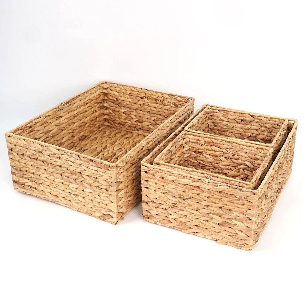 ABEL CRAFTS Wicker Basket Organizer Rectangle Water Hyacinth Storage Baskets Set Of 4 Organizing Bathroom Bedroom Kitchen Shelves Pantry Natural Woven Baskets Rectangular 🍀Handcrafted: Water hyacinth storage baskets set of 4 for living room, bedroom, bathroom, shelves, dining table, kitchen storage shelves or home decor are masterfully hand-crafted by skilled artisans in a rural areas in Vietnam – the base of seagrass, bamboo, rattan and water hyacinth craftsmanship of Vietnam for the past 200 years - nestled 110 kilometers outside of Hanoi capital city. 🍀Widely used: Water hyacinth storage baskets a solution to many storage needs, organizing and storing nursery products, clothes & underwear, socks, towels, toiletry storage, lady’s supplies, purse & accessories, magazine & books, files, supplies. Perfect display for Christmas, Thanksgiving, Halloween, wedding, party, and banquet. Outdoor and indoor use meet your different needs. 🍀Earth-friendly: Wicker basket organizer are made of water hyacinth, a plant that’s sustainably grown and easy to harvest, reusable and biodegradable. Beside rattan, wood, seagrass, bamboo, water hyacinth now is widely used by artisans to make home decor furniture and accessories. It is a perfect choice for your family's health, a great eco-friendly and sustainable decor and serving solution 🍀Stackable & multiple use: Whether it be by way of pure decor, storage or organisation for kitchen, pantry or bathroom, living room these Water hyacinth storage baskets suit your home in every way. They can stack on top of one another, closet or on shelves for efficient storage 🍀Wicker Basket Organizer Rectangle Water Hyacinth Storage Baskets Set Of 4 Organizing Bathroom Bedroom Kitchen Shelves Pantry Natural Woven Baskets Rectangular 🍀An ideal christmas or birthday gift: Hyacinth storage baskets for those setting up a home for the first time or a lovely gift for women who furnish their homes with personality and warmth. 🍀Dimensions - large design: The large basket measures 16.14 x 11.8 x 6.3 inches, the medium 14.6 x 10.24 x 5.7 inches, 2 small baskets 8.66 x 6.3 x 5.71 inches. Large and sturdy design for more storage and cute appearance will add a breath of natural vitality to your home, create a warm and simple living environment. 🍀Durable quality - easy to care: The wicker baskets for storage use a wrapped metal frame, so it is extremely sturdy and prevents scratching. They are stackable for easier moving and saving your space. You can clean them with a damp and soft cloth, dry them in a cool place. 🍀A classy fusion of utility & decor: The classic appeal of a pantry organization and storage never goes out of style! with the creativity of the craftsman, the shape of the bins rectangle, the natural color of water hyacinth, and the size of the wicker, you've got yourself a stunning slice of ambience you can admire for years to come 🍀Easy organization: Eliminate the excess clutter by organizing items for easy access or storing them away in style. Multi use storage for any room, as a rustic nursery diaper caddy, closet organizer, storage cubes, bathroom basket, kids organizers and storage, decorative interior design pieces for display shelves, pantry, accessories storage, room storage, pet supplies, toy storage, office storage, clothing, or as a cute guest room amenities basket, all-purpose, wicker storage bins like these SHIPPING - We offer FREE shipping on all orders! - We ship within 3 business days of payment, usually sooner - We use a selection of shipping services such as UPS, FedEx, USPS etc - We only ship to the lower 48 states, no APO/FPO addresses or PO Boxes allowed International buyers – please note: Import duties, taxes, and charges aren't included in the item price or postage cost. These charges are the buyer's responsibility. - Please check with your country's customs office to determine what these additional costs will be prior to bidding or buying. - We have confidence in our products, but if you are not fully satisfied please contact us within 30 days of purchase and you will get full refund. * Order Cancellation Policy ** You can return a product for up to 30 days from the date you purchased it. 1. The seller reserves the right to cancel the special case only due to eBay cancellation fee. 2. The decision of seller is the final. 3. The seller will respond to the cancellation request within 2 business days. Please wait for the result of cancellation. 4. In case the cancellation is not completed by some reasons, the buyer can follow the options below to get the refund. 4.1 The buyer can reject the item when it arrives. 4.2 The buyer can send the item back to the seller within 30 days If the buyer receives item (USA Shipment ONLY). The seller will provide the FREE return label to the buyer when the buyer opens " Return Item" case on eBay by using the reason as "Change my mind" ONLY. 5. When buyer has placed the order. The order will be processed and completed by automatic warehouse system within 5 minutes. In case that buyer sends the cancellation request after 5 minutes of placing the order, the request will be rejected. **Sending direct message to cancel the order is not allowed for every case.* Return Policy For the return case - If buyer would like to return the items for refund or replacement, please CONTACT SELLER to receive the free return label from seller. The refund or replacement will be processed with the tracking number of return label which is provided by seller only. The other ways of return which are not approved by seller will not be processed for the refund or replacement. CUSTOMER SERVICE - We try our best to make sure every customer is completely satisfied. - If there's a problem, feel free to message us! - We're happy to help.