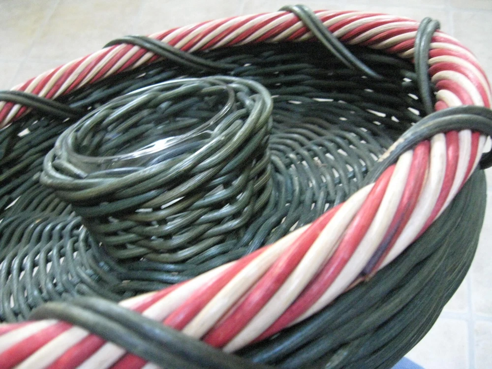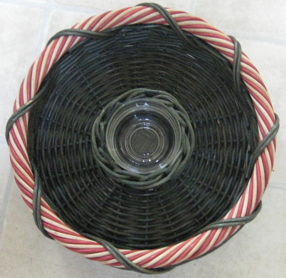 Wicker Rattan Chip Dip Serving Tray Bowl 14.5 Inch Christmas Red Green White