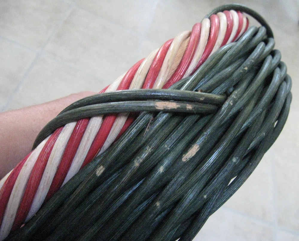 Wicker Rattan Chip & Dip Serving Basket Tray Bowl Green Red White 14.5” Holiday