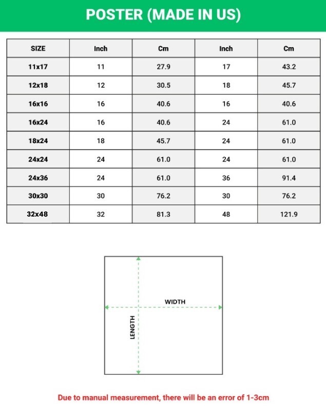 Make your room more colorful and add characters to your space with this simple custom Poster. Made from high-quality paper, our posters are perfect to hang on the wall. You can easily decorate any space from a party, bedroom, bathroom, kids room, living room, office, dorm, and more with our print poster. I also accept printing on demand - High-quality resin-coated photo base paper. - Smooth surface, maximum color gamut, dmax, and image resolution. - Heavyweight (230 gsm); 9 mil base. - Wrapped in protective tubes. *FRAME NOT INCLUDED* Please note colours can be less vibrant on print than what you see on screen for obvious reasons but please be assured all are printed to the hights quality. This Print comes in 4 ready-to-frame sizes: 12"x18" 16"x24" 24"x36" 32"x48" Let us know if you have any questions. Thanks for visiting our shop!