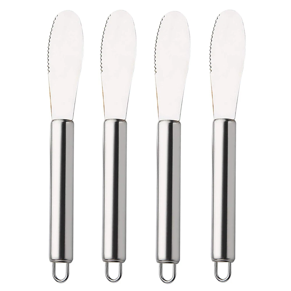 Wide Butter Spreader Knife Set 4-Piece Stainless Steel Cheese Knife Serrated ...
