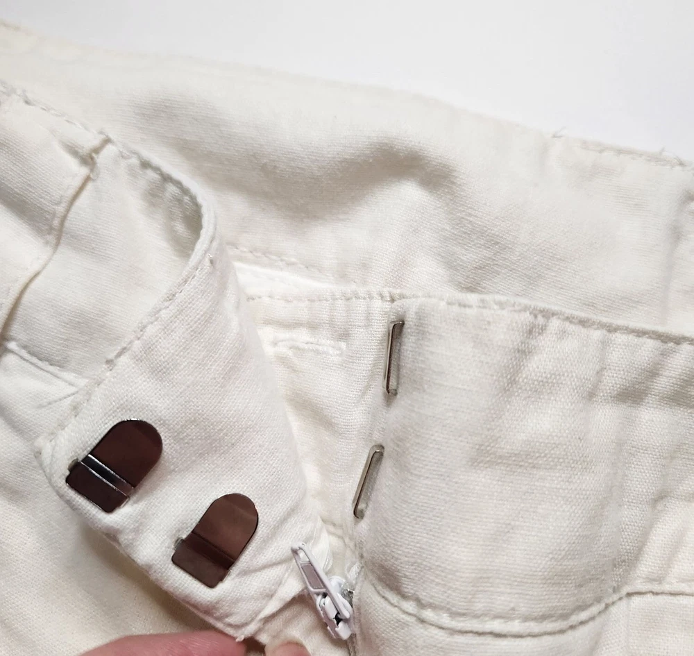 Wide Leg White Linen Blend Pants With Hook & Eye Closure vacation beachcore