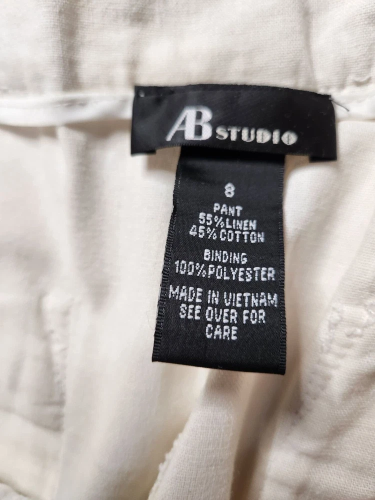 Leg Style: Wide-Leg Style: Capri Material: Linen, Cotton Department: Women Color: White Size Type: Regular Type: Pants Brand: AB Studio Closure: Hook & Eye Size: 8