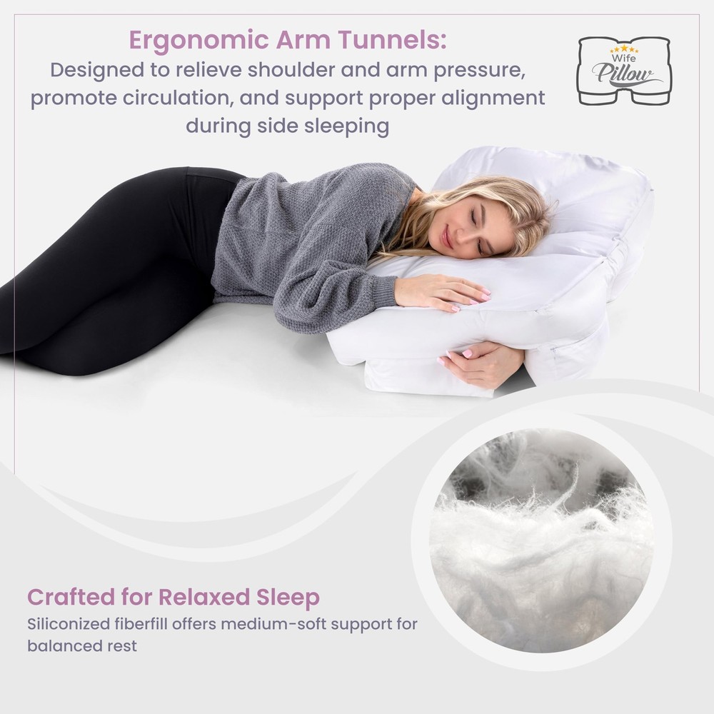 BUY WITH CONFIDENCE 100K+ Satisfied Buyers as your satisfaction is our top priority with easy returns, and dedicated support. FAST & RELIABLE SHIPPING All orders are processed quickly with reliable shipping partners. Most items ship within 24 hours. 20+ YEARS OF EXPERIENCE We pride ourselves on serving customers worldwide for over 20 years at lowest Possible Prices. Wife Pillow - Adjustable Side Sleeper Pillow with Arm Tunnels for Shoulder Pa... The Wife Pillow - Ultimate Shoulder and Neck Pain Relief for Side Sleepers Meet the Wife Pillow-a thoughtfully designed side sleeper pillow for adults that brings serious comfort and relief to those dealing with shoulder pain, neck tension, or arms falling asleep at night. Whether you're a pillow arm sleeper or just want better alignment while you rest, this pillow with arm holes is made to support the way you actually sleep. This ergonomic design features built-in arm tunnels that help reduce pressure on your shoulder and arm, making it an ideal pillow for shoulder pain relief. It’s perfect for easing discomfort from rotator cuff issues, poor posture, or just the aches that come from sleeping the wrong way. Plus, it comes in a lovely pink gift box-great for gifting or treating yourself. The Wife Pillow is filled with Down Alternative Fiber Fill that’s CertiPUR-US certified-so it’s safe, breathable, and keeps its shape over time. The outer shell is OEKO-TEX 100 certified for quality, and the pillow comes vacuum-sealed and hermetically clean for freshness right out of the box. Want more control over your comfort? The adjustable design includes five zippers so you can change the height, angle, and firmness to fit your needs. It even comes with an extra ½-pound bag of memory foam so you can fine-tune your perfect feel. A soft, durable jersey-knit pillowcase is included, made with a blend of polyester, viscose, nylon, and spandex for breathability and stretch. Whether you’re looking for a shoulder pillow for side sleeping, a side sleeper pillow with arm hole, or simply the best pillow for shoulder pain, the Wife Pillow is a cozy, customizable solution that supports a wide range of body types and sleeping positions. Say goodbye to pillow arm numbness, awkward angles, and restless nights. With the Wife Pillow, you’ll sleep better, wake up refreshed, and finally feel the difference a truly supportive shoulder relief pillow can make. Arm Tunnel Pillow for Side Sleepers: This ergonomic arm hole pillow helps relieve shoulder pain and arm pressure while preventing numbness and discomfort. Features 5 zippered compartments to customize height, firmness, and angle for personalized support. Ideal as an arm hole pillow for side sleepers or arm pillow for rotator cuff relief, better alignment, and lasting comfort through the night. Made with premium materials for lasting comfort and relaxation all night. Fully Adjustable Support: Designed for adults, this ergonomic pillow features arm tunnels to reduce pressure and improve circulation—ideal as an arm under pillow side sleeper solution. Perfect as a pillow for shoulder pain, and for side sleepers to prevent arms falling when asleep. Provides targeted support for post-surgery recovery, better body positioning when sleeping for a restful, pain-free night. Oversized for Total Body Comfort: Larger than standard pillows (2' to 8' X 20' X 28.5') to accommodate a wider range of body sizes, this thoughtfully designed pillow offers extended support for better body alignment and targeted shoulder pain relief. Ideal for side sleepers or anyone needing extra support. Use as a shoulder relief or arm sleeper pillow. Clear dimensions ensure you get exactly the comfort you expect—no surprises, just consistent, lasting relief. Premium Certified Materials: Filled with Siliconized Fiberfill for ultimate comfort and wrapped in a specially designed cover available in a selection of different types, this side sleeper pillow ensures cool, comfortable sleep. Designed to relieve shoulder pain, it molds to your body, reduces pressure, and resists odors. The removable, machine-washable cover makes maintenance easy. Enjoy long-lasting, supportive comfort for effective shoulder pain relief. Better Sleep, Happier Life: This ergonomic side sleeper pillow with US-Patented arm tunnels helps prevent numb arms and ease shoulder pain for restful, refreshing sleep. A thoughtful gift for cozy nights and better rest, it’s designed to enhance comfort and relaxation. Backed by a 3-year quality guarantee, the Wife Pillow delivers lasting support and a better sleep experience for you or someone you love. Item Specifics Cover Material: Polycotton Model Name: Arm-Tunns-Mbody-Fib Item Package Quantity: 1 Brand: Wife Pillow Item Display Weight: 6.6 Fill Material: Polyester Fabric Type: Down Alternative Siliconized Fiberfill Item Firmness Description: Medium Soft Fill Recommended Uses For Product: Side Sleeper Size: 2' To 8' X 20' X 28.5' Part Number: Arm-Tunns-Mbody-Fib-V1 Pillow Type: Bed Pillow About Us Payment Shipping Returns Welcome to Bixlife ! We are committed to providing high-quality products at competitive prices with exceptional customer service. Our mission is to make your shopping experience smooth, reliable, and worry-free. Every item we offer is carefully selected and shipped with care. Shop with confidence knowing your satisfaction is our top priority. Shop Smart. Shop Secure. Shop Bixlife! We only accept eBay Managed Payments . This allows you to securely pay with your preferred method, including major credit and debit cards, PayPal, Apple Pay, and Google Pay (where available). Payment is required at checkout to ensure fast and smooth order processing. Domestic Shipping Only We ship exclusively within the United States . No International Shipping We do not ship outside the USA at this time. Orders are processed and shipped promptly after payment is received. Tracking information will be provided once your order has been dispat