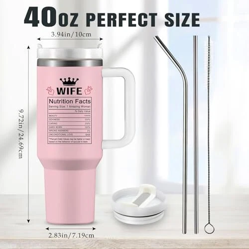 Menu 1. We require immediate payment. 2. We currently accept payment via eBay managed payments only. 3. Once payment is cleared, we will dispatch your shipment within 1-3 business days. Please refer to the "Shipping" tab for more information regarding shipping speed to your destination. Wifey Gifts for Women, 40oz Wife Tumbler with Handle, Wifey Coffee Cup Tumbler, Anniversary for Wife, Wife Birthday Gift Ideas, Christmas Gifts for Wife Insulated Travel Mug Product description 【Unique Design】Designed with wife in mind, it's a great gift that she'll cherish and use every day, With a comfortable handle, this coffee tumbler mug is easy for her to hold and carry around 【High Quality-1】This cup is made of food-grade stainless steel, bisphenol A-free, double-wall vacuum, not easy to break, and not easy to scratch. The ergonomic handle relaxes your hands, you can enjoy your drink at home, office, gym or on the go 【High Quality-2】Double-wall insulation provides a vacuum insulated coffee cup with a sweat-proof and non-clotting cup appearance that can keep your drink cold or hot at the right temperature for up to 6 or 12 hours, depending on the outside temperature 【Gifts for Wife from Husband】Show your appreciation and love for mom with this coffee cup, Whether it's for Mothers Day, Wedding Anniversary, Christmas, Birthday, Valentine Day, Thanksgiving or any other special occasion 【With Lid and Straw】40 oz stainless steel cup with 1unbreakable straight steel straw and 1 bent steel straw, 1 free straw brush and 1 splash-proof sliding cover PLEASE MESSAGE US IF YOU HAVE ANY OTHER QUESTIONS, AND MANY THANKS FOR READING ALL OF THIS. Copyright ©#. All Rights Reserved.