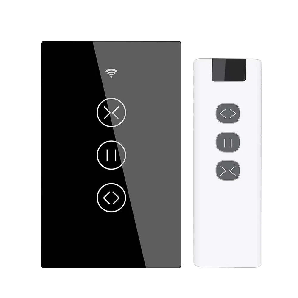 New Products! New WIFI 2.5D smart curtain switch(Exclusive discount) WiFi RF433 Smart Touch Panel Curtain Blinds Roller Shutter Switch(2/3 Way) Multi-Control Tuya Smart Life App Relay Status and Backlight Switch Wireless MHz433 Remote Control Motorized Curtain Motor Needed,Works with Alexa Echo Google Home By Moes 2020 New Arrival Upgraded with More Personalized Points: Update1: Multi-control in a much easier way Update2: New pairing mode with WiFi+Bluetooth Update3: Backlight ON/OFF optional Provide much more convenience and updates for your smart lifestyle with the price unchanged as before. Product Features: 1.Easily transform your house into a smart one with the new powerful functional smart curtain switch;2/3-way multi-control association to control 1 roller blinds,shutter curtain with multiple curtain switches;Intelligently control our roller blinds,shutter curtains in a much easier way with multiple controlling modes;RF remote and manual control your curtains optional and available meanwhile with RF frequency built in,so as group control multiple switches with one Remote switch;achieve multi-control by associating to other smart switches;can work with smart curtain motor for roller shutter/blinds to realize automation for all curtains at home;add motorized shades or other similar devices to your smart home with Smart Curtain Motor! (Note:the curtain motor is not included in the package,you need a self-purchase of it;RF remote control switch is included in the package.) 2.Remotely control devices with your smart phone via Smart Life and Tuya App wherever you are;Compatible with Amazon Alexa and Google Home allows for hands-free voice control. 3.Reinsert new features into upgraded Smart Life Tuya App backlight switch setting also,providing much more humanized intelligent operation design for your smart lifestyle;share control with family and friends for added convenience. 4.Match different kinds of curtains such as window blinds/roller blinds/Venetian blinds /roller shutter.Install the Smart Curtain Switch in a lot of places,like office/study/bedroom/ living room etc.,even control the Awning in your yard. 5.Take full control of connected appliances with timers, schedules and countdown (1/5/30 mins, 1 hour, Monday to Sunday ,etc.) with the app;A much easier pairing mode for adding the device with WiFi and Bluetooth connected;includes full 2-year warranty and 60-day refund guarantee for complete satisfaction. ATTENTION:The RF Remote Control Switch Can Only Work with the RF+WiFi Curtain Switch. Main Specifications: Curtain Switch: Working Voltage:AC 100-240V 50/60Hz Load Power≤600W Current:2.5A Standby Power:≤0.5W Working Temperature:0-80℃ WiFi Protocol:IEEE 802.11 b/g/n Connection Mode:Zero Line ,Fire Line RF Remote: Frequency:433 MHz Standard Code:1527 Wireless Communication:RF Battery Required*1