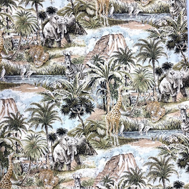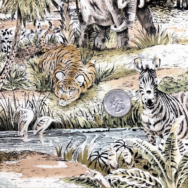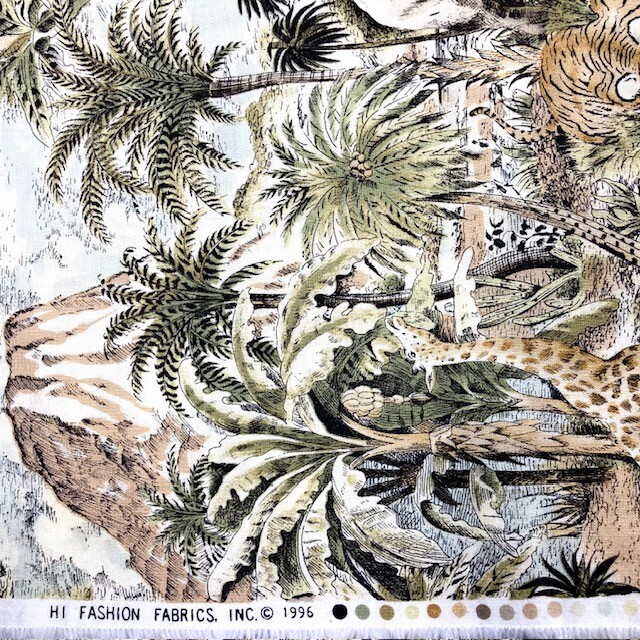 Vintage 1996 print from Hi Fashion Fabrics. Wild animals with landscape on 100% cotton. One yard. Great for quilting or sewing and craft projects. Please note, no subcuts or returns on fabric items.