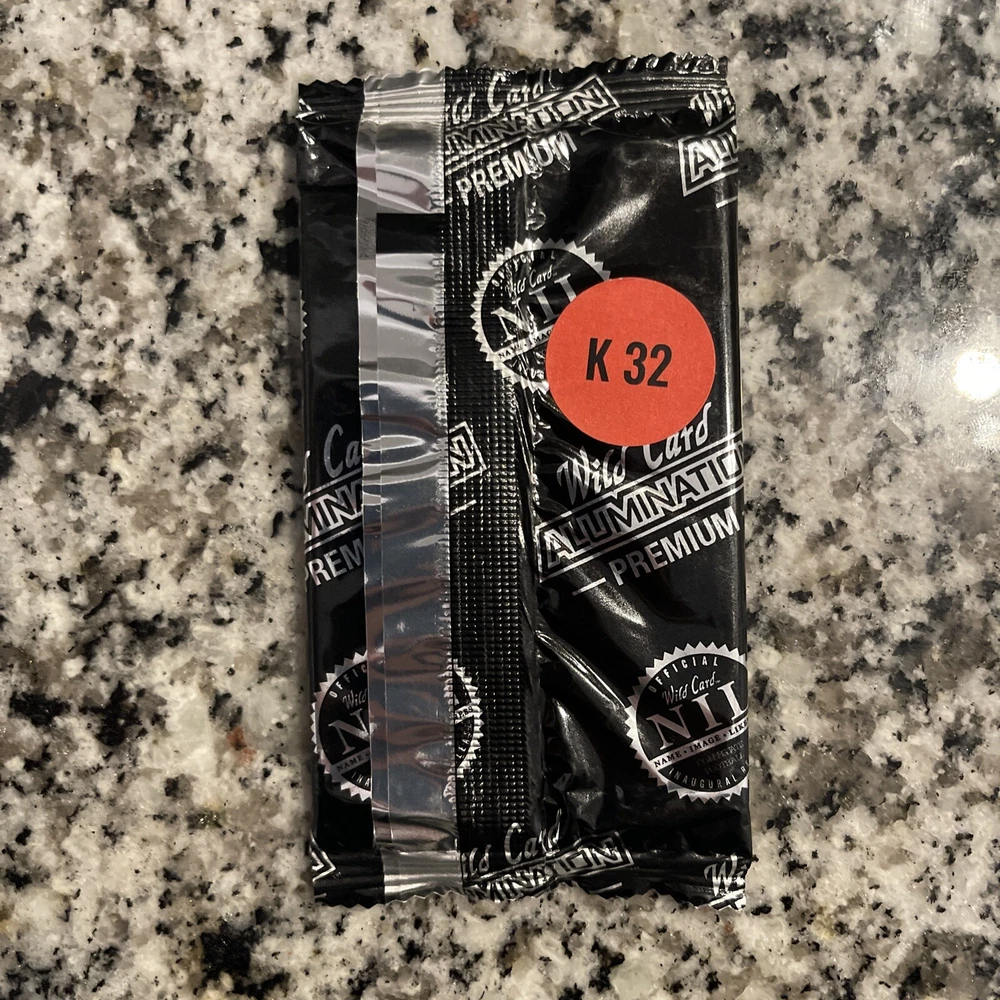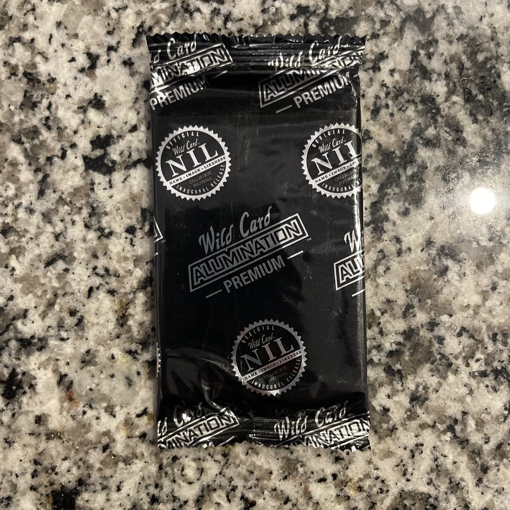 The product is a Wild Card Matte Alumination NIL Inaugural Release Collegiate Football trading card pack. Manufactured by Wild Card, this pack includes sports trading cards featuring football players from collegiate teams. The set is part of the Wild Card series and is designed with a matte alumination finish, adding a unique touch to the cards. This pack is perfect for collectors or fans looking to add to their sports trading card collection.