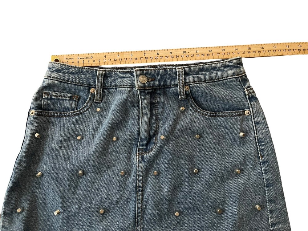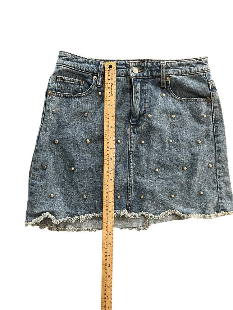 Wild Fable 90s Y2K Blue Studded Denim Mini Skirt with Frayed Hem Women Size 10