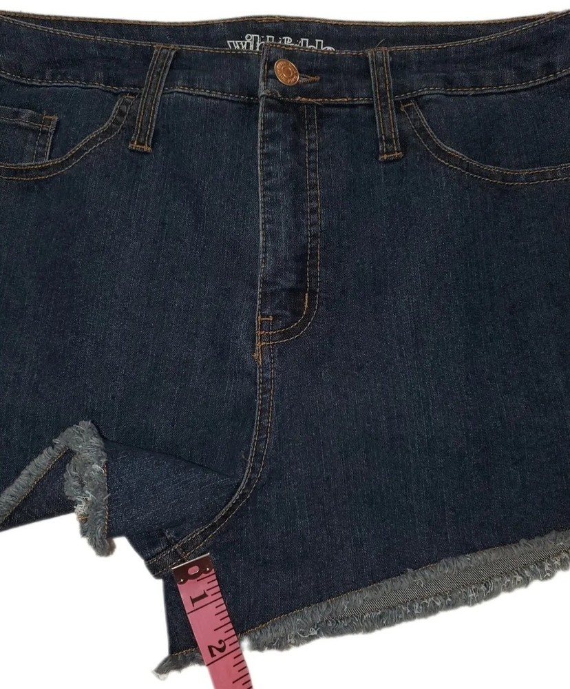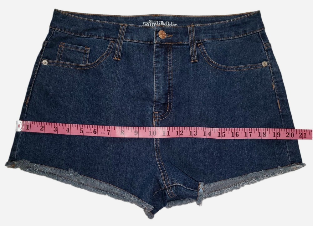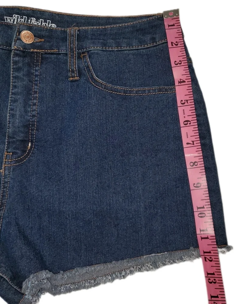 Wild Fable High Rise Dark Wash Denim Cutoff Blue Jean Shorts Women's Size 10 Regular. Dark Wash Blue Denim. 70% Cotton 29% Polyester 1% Spandex (Please see photos for measurements) Please also be sure to double-check your own measurements before ordering. (FREE SHIPPING) Clean Like New Pre-owned Condition. (Item has been washed) Feel free to ask any questions you may have. Take a look at our other items. Our inventory grows daily.