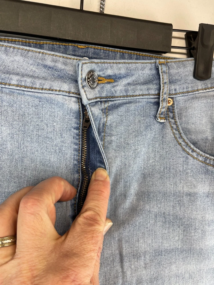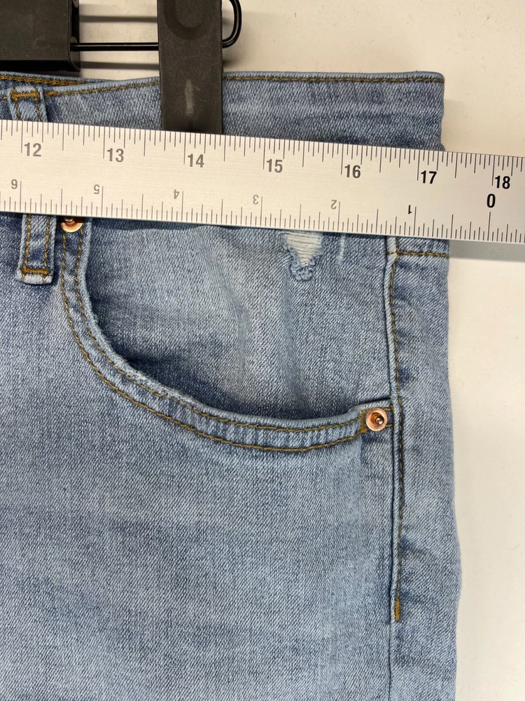 Wild Fable Jeans in size 16S with a high-rise skinny fit, light wash denim. Featuring a 5-pocket design, button closure, and distressed accents for a grunge or 90s-inspired style. Made of comfortable stretch cotton-spandex blend for easy care. Perfect for a preppy look in all seasons. Machine washable. Very good preowned condition with normal preowned wear and no issues. Please see all photos. For clothing specifically, see photos for all measurements and/or any issues if applicable. Pay close attention to the measurements as the size of the garment may quite possibly be different than the actual measurement(s) due to washing, shrinkage, or stretching as these are used clothes. The size in the title is the size on the tag of the garment. See photos for measurements of actual measurements as they may differ. ALWAYS CHECK THE MEASUREMENTS IN THE PHOTOS. This will remove any questions on measurements as well as always cover the possibility of human error in the listing(s) in the case of a typo or oversight. All clothing and shoes have been washed/cleaned, and comes from a smoke free environment. If shoe trees appear in the photos, they are for photography purposes only to illustrate how the shoes look filled out, and are not included. I am available for questions. I accept or negotiate reasonable offers. Have an amazing day. Thank you.