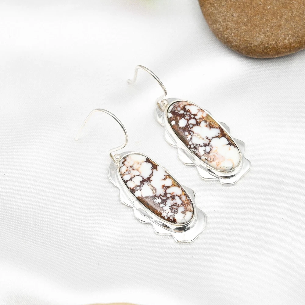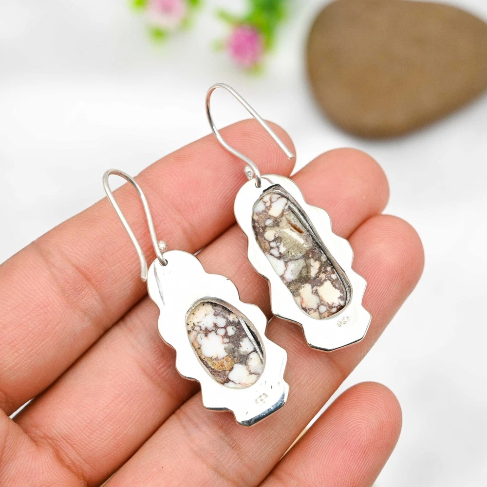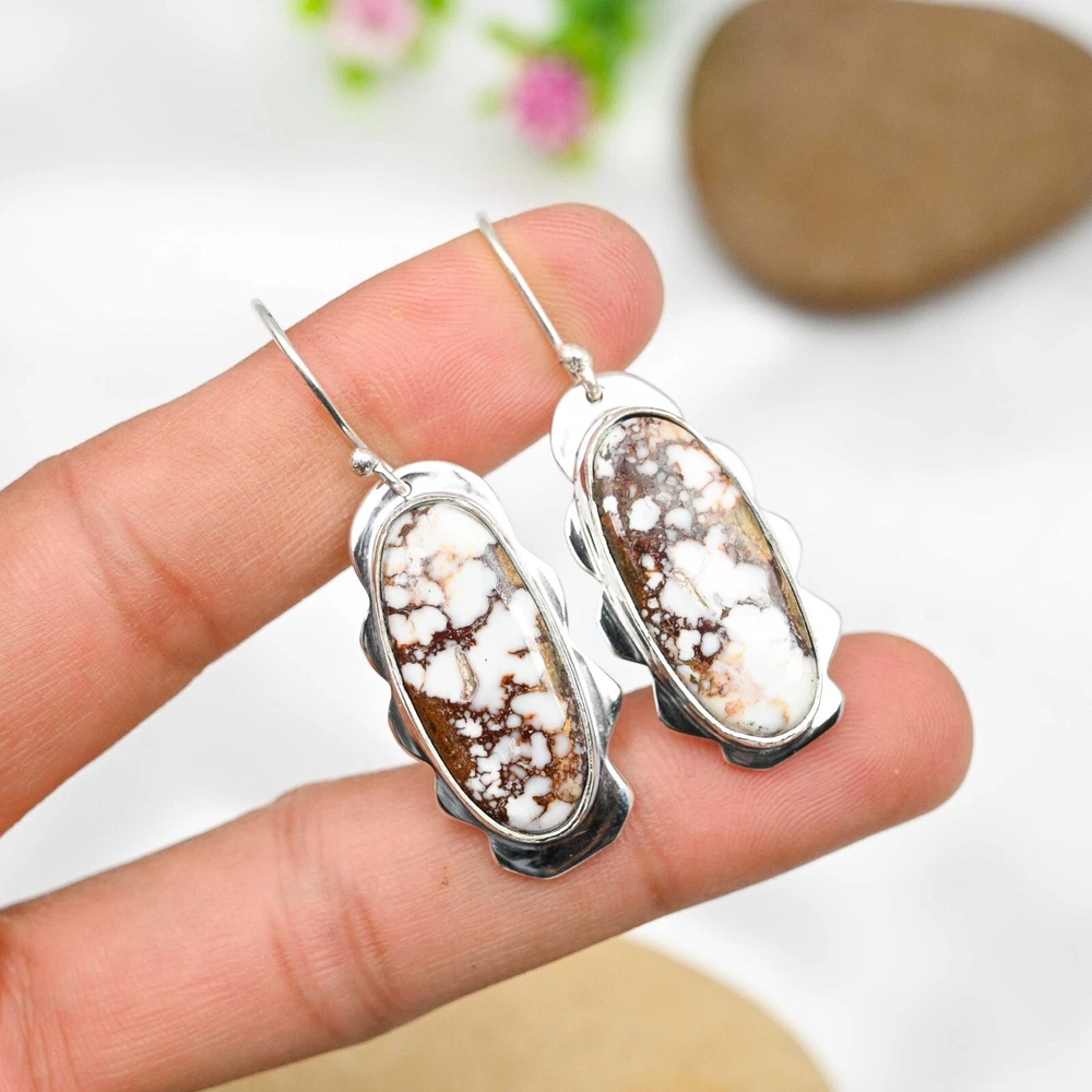 Main Stone Creation:NaturalDiamond Clarity Grade:N/AColor:SilverMetal Purity:925Type:EarringsItem Length:1.96"Brand:HandmadeTheme:Beauty, Bohemian, Ethnic, Halloween, LoveSeller Warranty:YesClosure:HookShape:Same As PictureStyle:Dangle/DropCollection:HandmadeSetting Style:BezelTotal Carat Weight:10 carat and aboveOccasion:Anniversary, Birthday, Christmas, Engagement, Father's Day, Mother's Day, Valentine's Day, WeddingMetal:Sterling SilverColored Diamond Intensity:N/ANumber of Gemstones:2Material:Stone, GemstoneMain Stone Shape:OvalCut Grade:ExcellentBase Metal:Sterling SilverMain Stone Color:WhiteNumber of Diamonds:N/ACertification:N/ACountry of Origin:IndiaEar Area:LobeMain Stone Treatment:Not EnhancedDiamond Color Grade:N/ASecondary Stone:Wild HorseMain Stone:Wild HorseCountry/Region of Manufacture:India