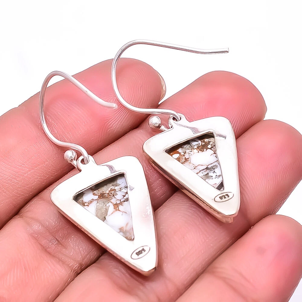 Theme Beauty Main Stone Depth As Seen in Picture Main Stone Length As Seen in Picture Main Stone Width As Seen in Picture Seller Warranty Yes Shape As Seen in Picture SKU E_8014_342_58 Antique Yes Handmade Yes Type Earring Style Drop/Dangle Metal Sterling Silver Metal Purity 925 Parts Per 1000 Base Metal Sterling Silver Total Carat Weight 35 Ctw Main Stone Wild Horse Main Stone Creation Natural Main Stone Color White Main Stone Treatment Natural Material Gemstone, Stone Number of Gemstones 2 Item Length 1.64" Features Engraved, Nickel-Free, Handcrafted Ear Area Lobe Brand Unbranded Country/Region of Manufacture India Country of Origin United States Color As Seen in Picture Closure Wire Hook Diamond Clarity Grade Not Applicable Number of Diamonds As Seen in Picture Item Diameter As Seen in Picture Diamond Color Grade Not Applicable Customized No Colored Diamond Intensity Not Applicable Certification 100% Genuine Guaranteed Setting Style Bezel Occasion Christmas, Birthday, Anniversary, Engagement, Wedding, Valen Shipping & Handling - Charge - 1st item-5.90 And Additional item-1.90 Handling Time - 1 Days . Delivery Time - 2 TO 3 DAYS. Shipping Service - USPS First Class Package 2 -3 Days. Returns - 1.We offer a 100% Money Back Guarantee minus shipping for 30 days after receiving the Item / item's. 2..The item must not be altered or damaged in any way shape or form. 3.Upon receiving these items your payment will be refunded. 4.Email us for return instructions before sending merchandise back. 5.Please allow up to 1 business day for all returns to receive credit. 6.Sizing does not affect the return policy. Payment - We accept PayPal for Payment ,should made with in 14 days once buying or winning done , in case of late information expected .