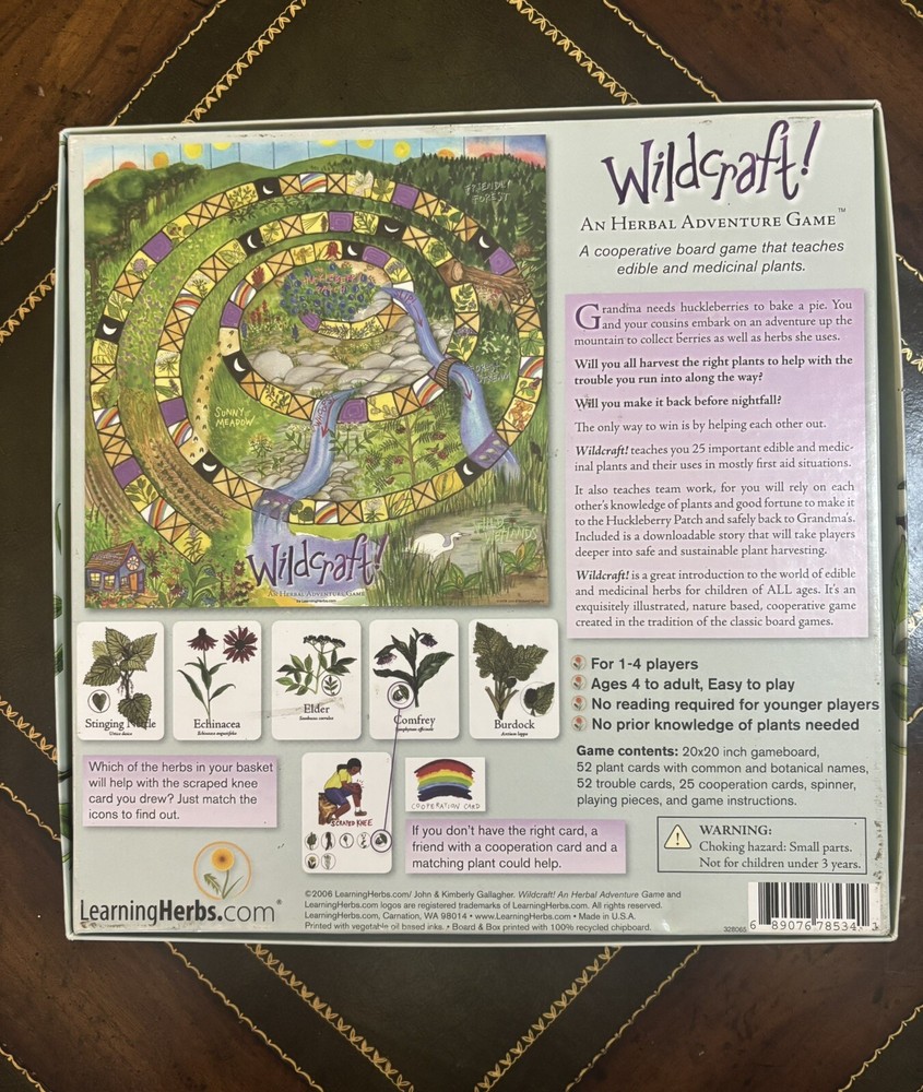 The product is a board game titled "Wildcraft!" released in 2013 by Learning Herbs. It is designed for solo play and suitable for players aged 4 and above. The game's theme revolves around nature and herbal adventures, aligning with the brand's focus on learning about herbs and holistic healing. Made in the United States, "Wildcraft!" offers an educational and entertaining experience for players to explore the world of herbs in a fun and immersive way.
