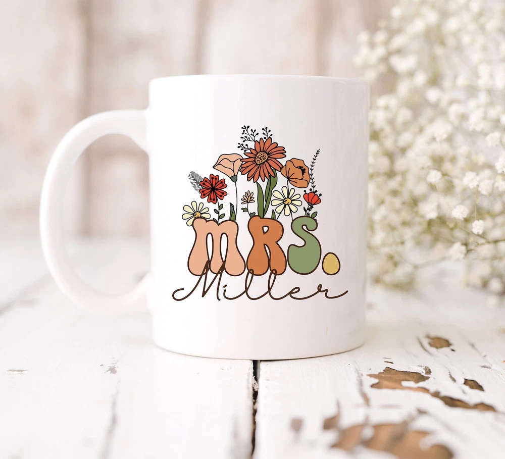 Wildflowers Mrs Mug Personalized Mrs Gift Bride To Be Gift Mug Custom Gift For Bride Mug Wedding Gift Bridal Shower Gift Bridal Gift Product Details.. This high quality 11oz. ceramic white mug has a premium hard coat that provides crisp and vibrant color reproduction sure to last for years. Perfect for all hot & cold beverages. The highest quality printing possible is used. It will never fade no matter how many times you wash it. Material: 100% Ceramic. Print both sides. Dishwasher and Microwave Safe. High Gloss + Premium White Finish. Printed in the U.S.A. Personalized & Custom. We support personalized and custom mug to add custom, when placing an order, you can add notes to the "order note" in shipping address section. Also you can contact us directly via message. Shipping Info. Ready to ship in 1 to 2 business days, All products are made-to-order and proudly printed in the United States. Shipped by USPS and DHL, You will receive your order in 5-7 days. Replace & Refund. All products are defective during shipping broken, chipped will be replaced free of charge. You are not satisfied with the product, we will refund 100% money to you. If any other issues arise, please do not hesitate to message, we would be more than happy to assist you.