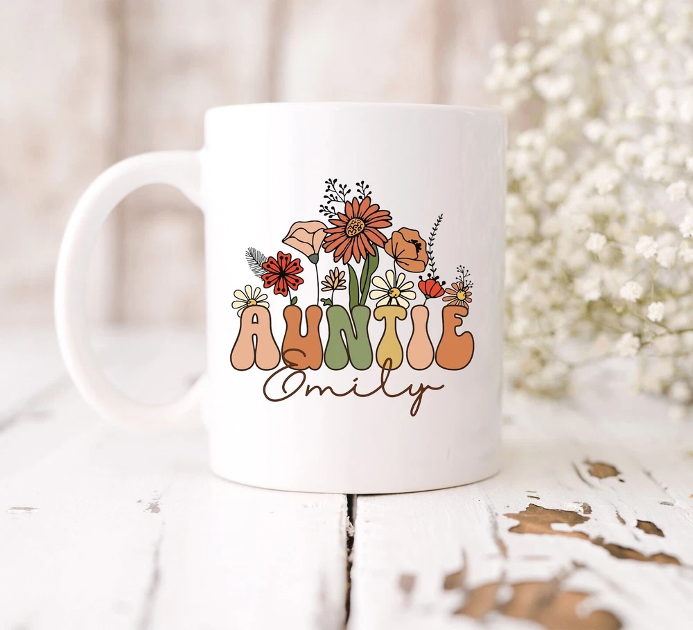 Wildflowers Mug For Auntie Personalized Auntie Mug Christmas Gift Custom Gift For Aunt Gift Idea Birthday Gift For Auntie New Aunt Gifts Product Details.. This high quality 11oz. ceramic white mug has a premium hard coat that provides crisp and vibrant color reproduction sure to last for years. Perfect for all hot & cold beverages. The highest quality printing possible is used. It will never fade no matter how many times you wash it. Material: 100% Ceramic. Print both sides. Dishwasher and Microwave Safe. High Gloss + Premium White Finish. Printed in the U.S.A. Personalized & Custom. We support personalized and custom mug to add custom, when placing an order, you can add notes to the "order note" in shipping address section. Also you can contact us directly via message. Shipping Info. Ready to ship in 1 to 2 business days, All products are made-to-order and proudly printed in the United States. Shipped by USPS and DHL, You will receive your order in 5-7 days. Replace & Refund. All products are defective during shipping broken, chipped will be replaced free of charge. You are not satisfied with the product, we will refund 100% money to you. If any other issues arise, please do not hesitate to message, we would be more than happy to assist you.