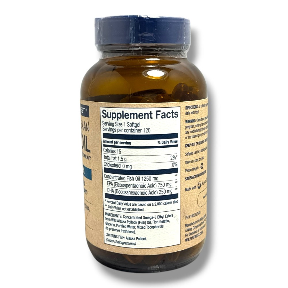 Wiley's Finest Wild Alaskan Fish Oil Dietary Supplement Peak Epa Heart and Joint Support -120 Softgels- NEW SEALED EXP 06-2027