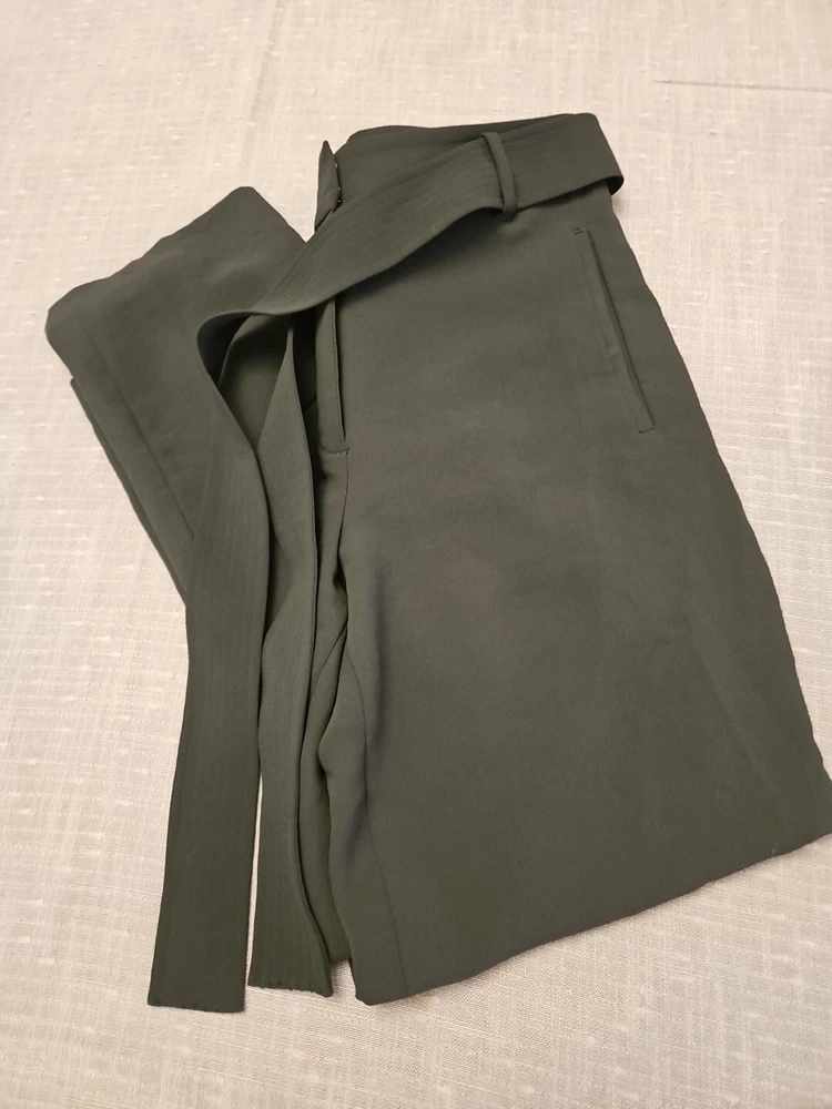 Rise: High (Greater than 10.5 in) Front Type: Flat Front Season: Winter, Spring, Fall, Summer Department: Women Size Type: Regular Type: Pants Brand: Wilfred Pattern: Solid Fabric Type: Crepe Closure: Tie, Zip, Button Leg Style: Straight Style: Dress Pants Theme: Preppy, City, 90s, classic, Christmas, designer, elevated basic, old money, quiet luxury, country club, coastal Granddaughter, chic, luxe, Hipster, Holiday, Metal, Money, Rock, School, capsule wardrobe, contemporary, aritzia Occasion: Business, Casual, Workwear, Party/Cocktail Fit: Regular Accents: Zipper Color: Green Size: 10 Material: Polyester Features: Pockets, Belted, Comfort, Slimming