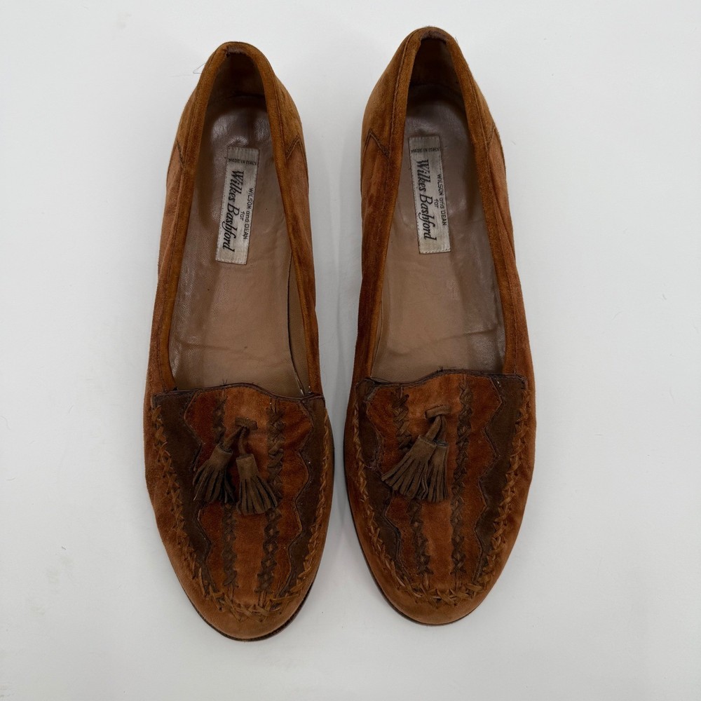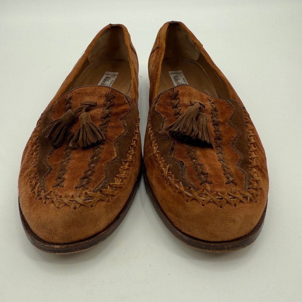 US Shoe Size: 12 Department: Men Features: Comfort, Slip-On, Tassel, Made in Italy, Leather Lining Customized: No Upper Material: Suede Lining Material: Leather Pattern: Solid Vintage: Yes Model: Tassel Loafer Style: Loafer Brand: Wilkes Bashford Shoe Width: D Insole Material: Leather Outsole Material: Leather Accents: Tasseled Color: Brown Type: Dress