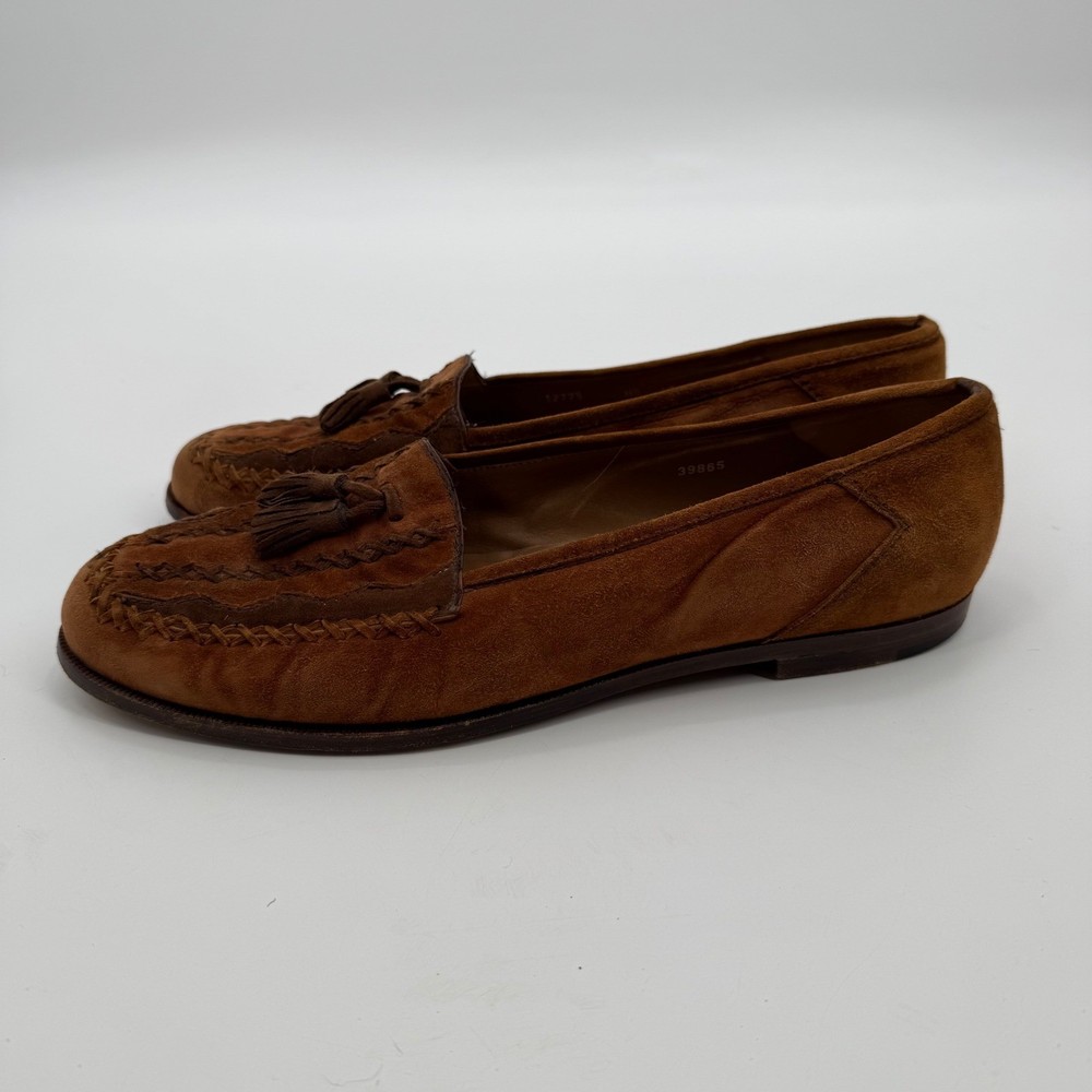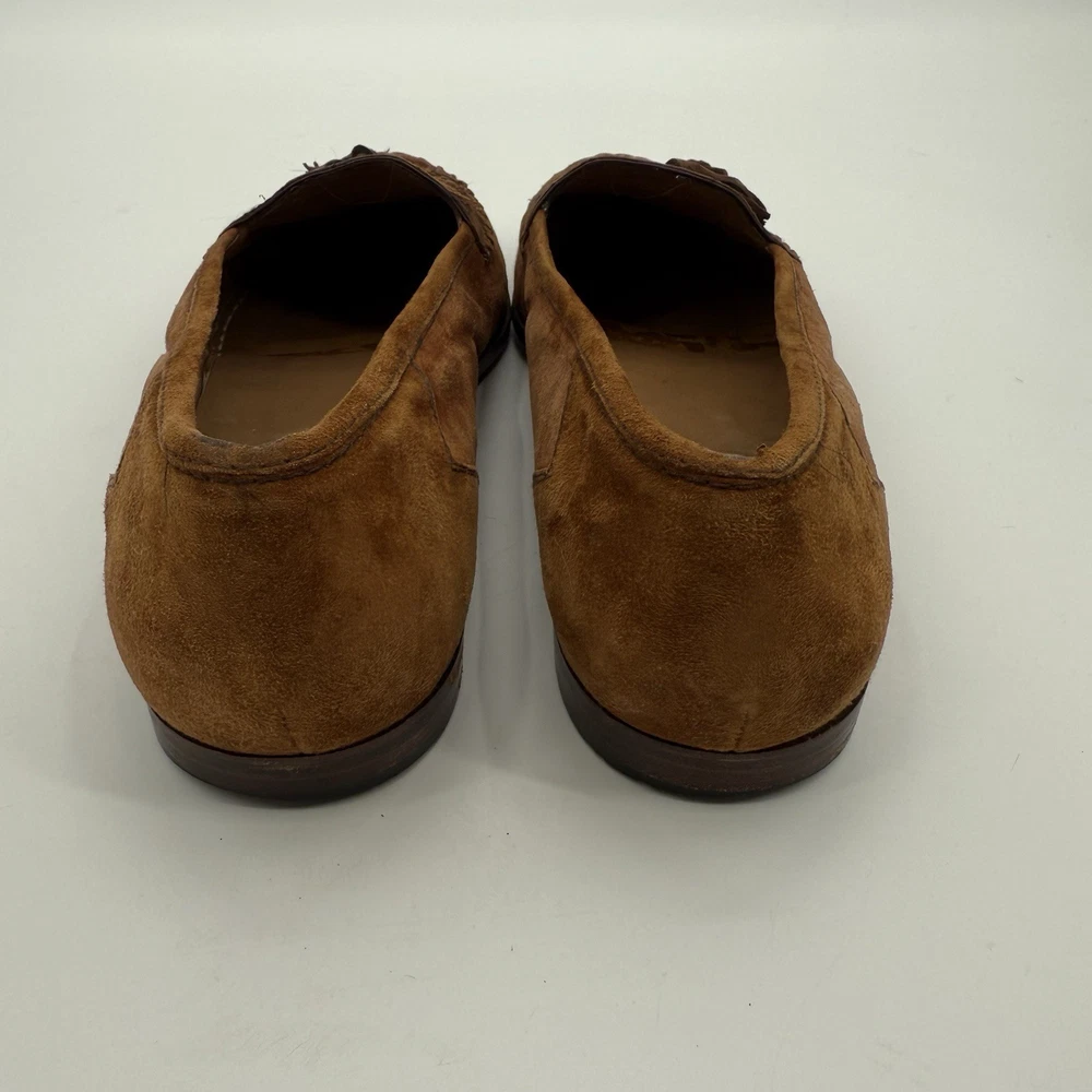 Please see photos for condition. Handsome suede leather loafers featuring a classic tassel design. These stylish shoes showcase a rich brown hue and intricate detailing along the upper. Crafted with quality and attention to detail, these loafers offer both comfort and sophistication. The design includes a traditional slip-on style, making them easy to wear for various occasions. Made in Italy, these shoes reflect a commitment to superior craftsmanship and timeless style. Color: Brown Department: Men Style: Loafer Upper Material: Suede Pattern: Solid Features: Comfort, Slip-On, Tassel, Made in Italy, Leather Lining Shoe Width: D Type: Dress Outsole Material: Leather Insole Material: Leather Model: Tassel Loafer Keywords: Wilkes Bashford, Wilson and Dean, Mens Loafers, Suede Loafers, Tassel Loafers, Brown Shoes, Leather Shoes, Slip On Shoes, Mens Footwear, Made in Italy, Designer Shoes, Classic Loafers, Vintage Loafers