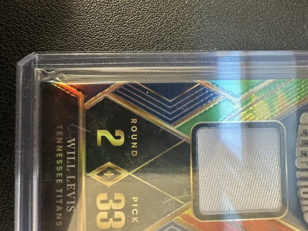 This is a rare and highly sought-after Will Levis Rookie 2023 Select Draft Selection Patch Tye Dye Titans trading card. With a print run of only 25, this card is a must-have for any serious collector. The card features a stunning Tie-Dye Prizm parallel/variety and is made from high-quality 130 Pt. card stock. The card is an original and comes from the National Football League (NFL) manufacturer Select. It is ungraded and has not been autographed. The card is in English and was manufactured in the United States in 2023. The card features Will Levis, a player for the Tennessee Titans, and is a great addition to any football fan's collection.