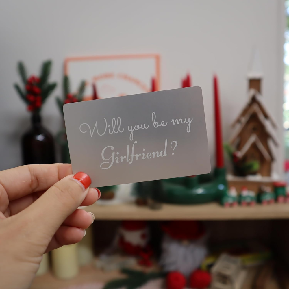 Store New Arrivals Add to Favorite View Feedback Contact Fast deliveries to the customer's home Quality customer service John Make the customers happy! Will You Be My Girlfriend?, Proposal Card for Her, Simple and Powerful, Engraved Alluminum Gray Card with Black Envelope Description I bought this card for my girlfriend and she absolutely loved it! The quality is amazing and the message inside was so sweet and personal. Definitely a unique way to propose and ask her to be my girlfriend. Heartfelt & Romantic: Features a sweet and clear Will You Be My Girlfriend? message, designed to warm her heart and make her smile. The size of this wallet insert is approximately the size of a credit card (Just 3.35' x 2.15' x 0.02'). Fits Perfectly in Any Wallet. More Than Just a Card: This is a physical token of your affection, something she can hold onto and look back on, reminding her of the day you asked. Product description The Perfect Moment Starts Here: A Proposal Card That Creates Memories Natural Brown Charm Pink Royal Blue Classic Black Elegant Red Forest Green Will You Be My Girlfriend? SPEAKS FROM THE HEART with Romance Card: The most sincere and straightforward way to express your feelings and take the next step in your relationship. Item model number CRD-8604657 Number of Items 1 Color Gray with Black envelope Material Type Metal Manufacturer Part Number CRD-8604657 Item Weight 0.16 ounces Pre-printed Will You Be My Girlfriend? Product Dimensions 3.35 x 2.15 x 0.04 inches ABOUT US We offer the best prices around on high quality products. Our E-store includes media such as books, movies, music and games while offering electronics, toys, sporting apparel, clothing, tools, general home, garden items and more. SHIPPING We are always working hard to ensure your package arrives as soon as possible. Please understand that some factors like weather, high postal traffic, and the performance of shipping companies are outside of our control. We offer free shipping to the lower 48 states and ship within 2 business days of payment, usually sooner. We do not accept P.O. Boxes. Please provide a physical address. For shipping outside of the continental USA, we only use eBay's Global Shipping Program. The item is shipped to KY and then sent to the rest of the world. International customers are responsible for all duties and taxes. Continue to 'check out' to calculate costs for shipping the item to your country. Messages regarding eBay's Global Shipping Program MUST be directed at eBay EXCLUSIVELY. RETURNS We offer a 30-Day Return Policy on items in which you are not completely satisfied with. You have the option of a full-refund or an exchange of the item. No returns are available on items shipped outside of the USA PAYMENT We accept PayPal. CONTACT US This page content is yet to come Please ad us to your favorite seller and visit again later Thank You CUSTOMER SATISFACTION We try our very best to make sure every customer is completely satisfied. If there's a problem, message us! We're happy to help. WE ACCEPT