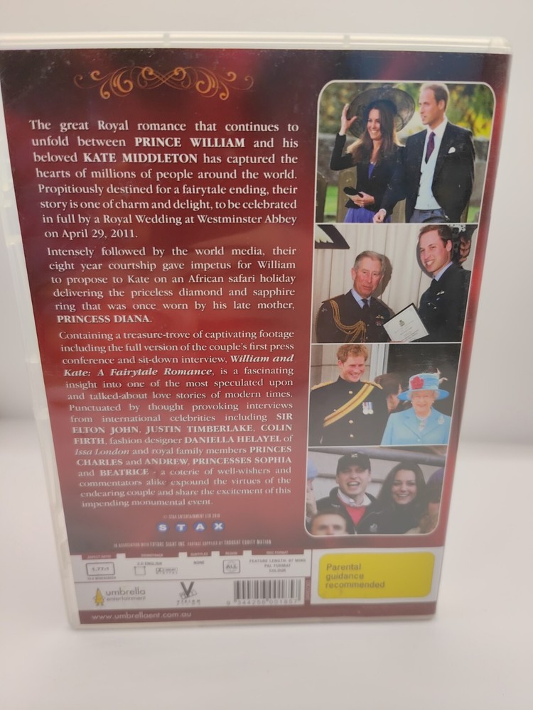 "William & Kate - A Fairytale Romance" (2011, ALL Region DVD) - VGC - a7. Hello Ebay Family! We have a wide selection of items available for purchase, including clothes and DVDs. We list new items daily and have thousands of items for you to choose from. The photos you see of items are of the item you are buying ??? not stock photos All items are sent tracked through Australia Post (if paid for) and tracking information will be sent to you as soon as possible. We are always happy to combine postage on all items in our store, so you can either add multiple items to your cart or send/accept offers and the price of postage should combine automatically for you! All reasonable ?best offers? will be considered, unreasonably low offers will respectfully be declined. We kindly ask you to regognise the care, attention and time invested in every aspect of our service when making an offer. Your understanding and respect for these efforts go a long way in supporting small businesses like ours. If you have any questions or concerns, feel free to send us a message and we'll do our best to help. We do our best to make note of any faults/flaws with all of our items, but we are still only human. If we happen to overlook something, don?t hesitate to get in touch with us first before leaving negative feedback so we can reach an amicable solution. Thank you for stopping by!