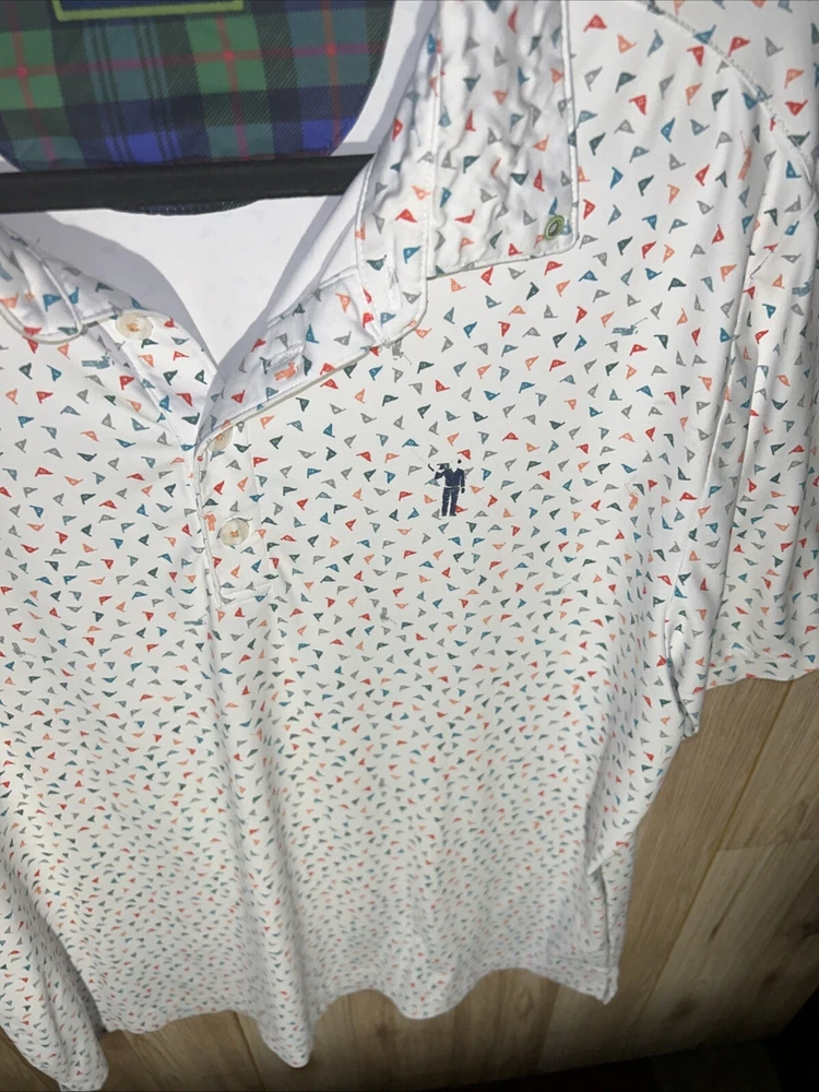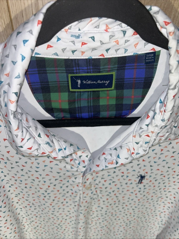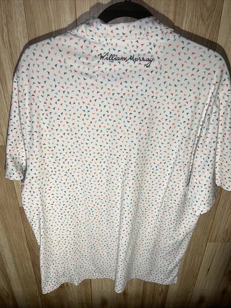 Collar Style: Spread Type: Polo Fit: Regular Season: Fall, Spring, Summer, Winter Size: L Garment Care: Machine Washable Size Type: Regular Country/Region of Manufacture: Vietnam Product Line: William Murray Features: All Seasons, Breathable, Double-Sided, Easy Care, Lightweight, Quick Dry, Stretch Closure: Button Pattern: Geometric Occasion: Casual, Party/Cocktail, Travel Sleeve Length: Short Sleeve Department: Men Brand: William Murray Handmade: No Vintage: No Theme: Beach, Birthday, City, Classic, Colorful, Designer, Funny, Hawaiian, Holiday, Nature, Nautical, Outdoor, Preppy, All Over Print, Texas, Titos, Martini, Golf Accents: Logo Fabric Type: Knit Color: White Neckline: Collared Model: William Murray Polo Material: Polyester, Spandex Personalize: No