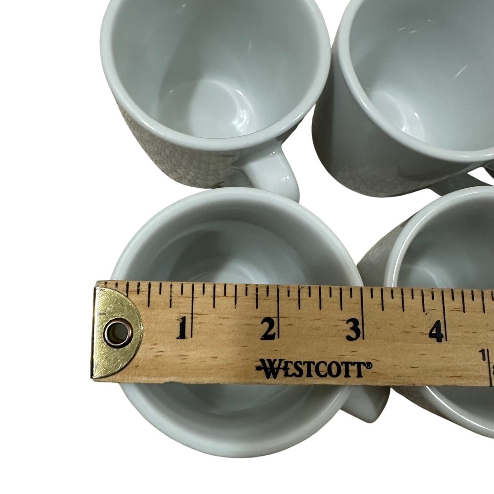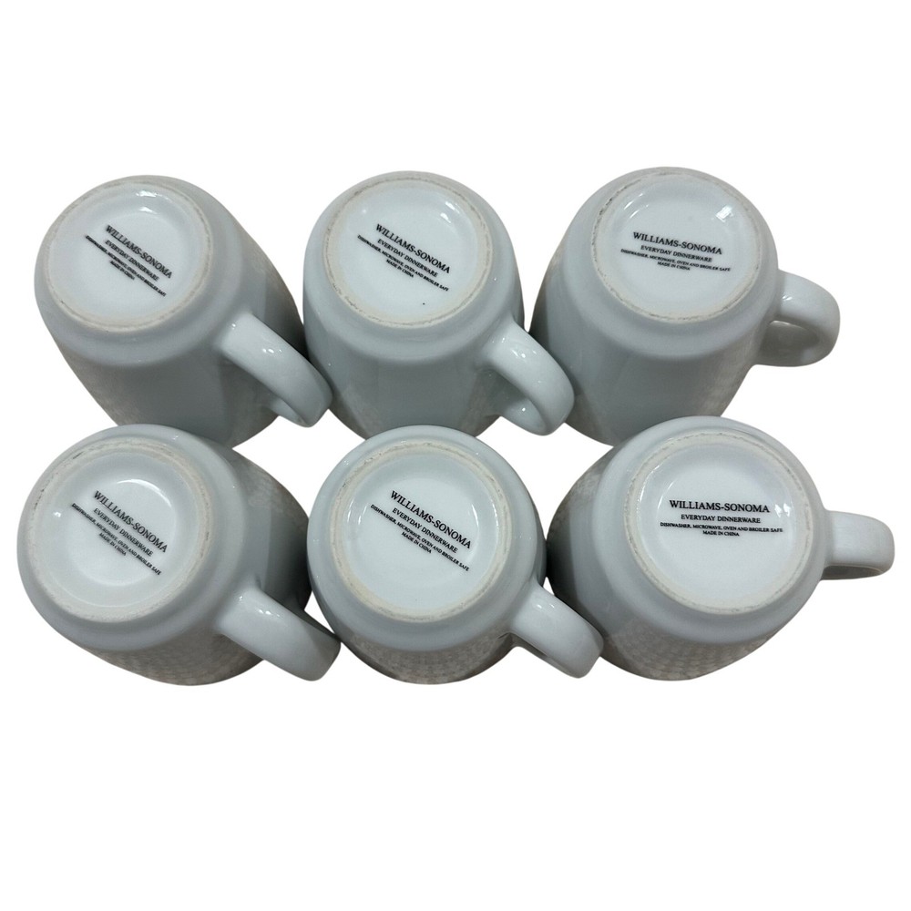 Williams Sonoma Everyday Dinnerware espresso cups in a clean, classic white finish. These durable porcelain demitasse mugs feature a sleek tapered design and a comfortable handle, perfect for serving a double shot of espresso or small macchiato. Crafted to withstand daily use, they are conveniently dishwasher, microwave, oven, and broiler safe. Measurements: • Height: 2.5" • Diameter: 2.75" Brand: Williams-Sonoma Collection: Everyday Dinnerware Type: Espresso Cup / Demitasse Material: Porcelain Color: White Quantity: Set of 6 Features: Dishwasher Safe, Microwave Safe, Oven Safe, Broiler Safe Shape: Round Style: Modern Classic Finish: Glossy Country of Manufacture: China Keywords: Cafe, Barista, Minimalist, Kitchen Essentials, Replacement, Small Coffee, Morning Ritual, Bistro, Neutral Decor, High Quality, Durable, Timeless, Entertaining