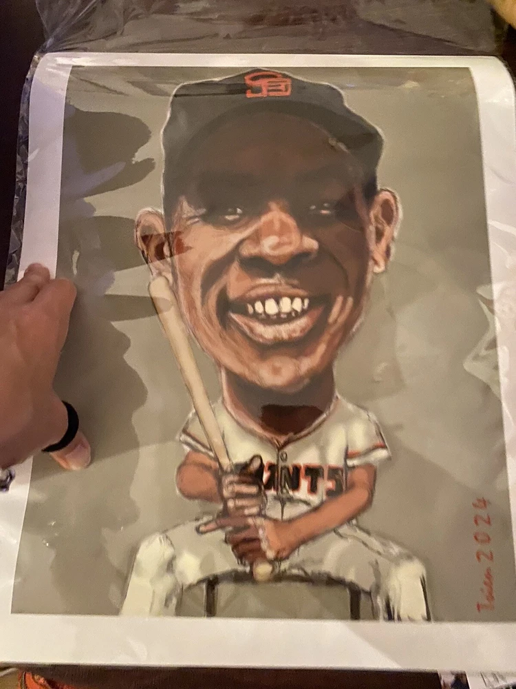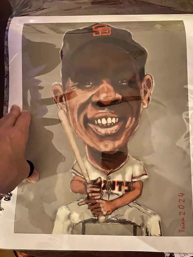 Willie Mays Caricature Giclee Print, 11”x14” Signed By Artist