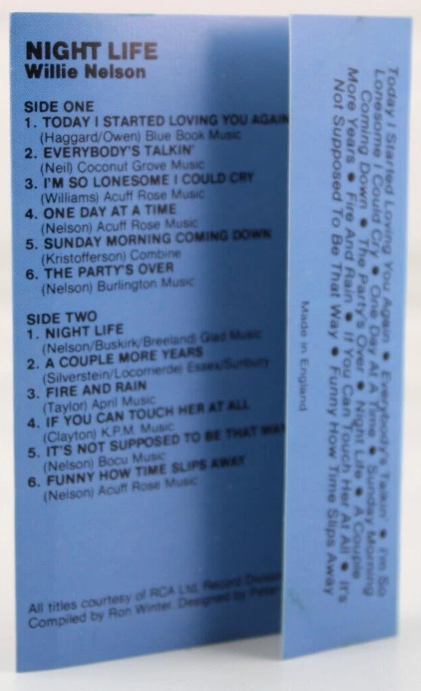 Willie Nelson Night Life Cassette Tape Outlaw Country 1986 British Import Tested WILLIE NELSON - NIGHT LIFE VINTAGE CASSETTE TAPE 1986, ENGLAND IMPORT ONE OF THE ORIGINAL OUTLAW COUNTRY STARS GREAT COLLECTORS' ITEMS TESTED WORKS GREAT GREAT ADDITION TO YOUR HISTORIC COUNTRY MUSIC COLLECTION COUNTRY MUSIC LEGEND ✨✨✨ THE CASSETTE IS IN VERY GOOD CONDITION, IT WAS TESTED AND WORKS GREAT THE JEWEL CASE IS ALSO IN VERY GOOD CONDITION THE INLAY IS VERY GOOD PLEASE SEE PICS ✨✨✨✨✨✨✨✨✨✨✨ The VinKris Collection is committed to delivering a great experience! We will ship to you with the greatest of care All items are shipped in sturdy boxes We use packing materials appropriate for the product to help ensure safe delivery Shipments to the United States and Protectorates are handled via USPS International shipments will ship via Ebay's International Shipping Program All packages are shipped within 1 business day of payment We ship daily Monday through Saturday Worry free purchases, we stand behind everything we sell with free 30 day returns We have thousands of happy customers and our goal is 100% customer satisfaction We are happy to answer any questions
