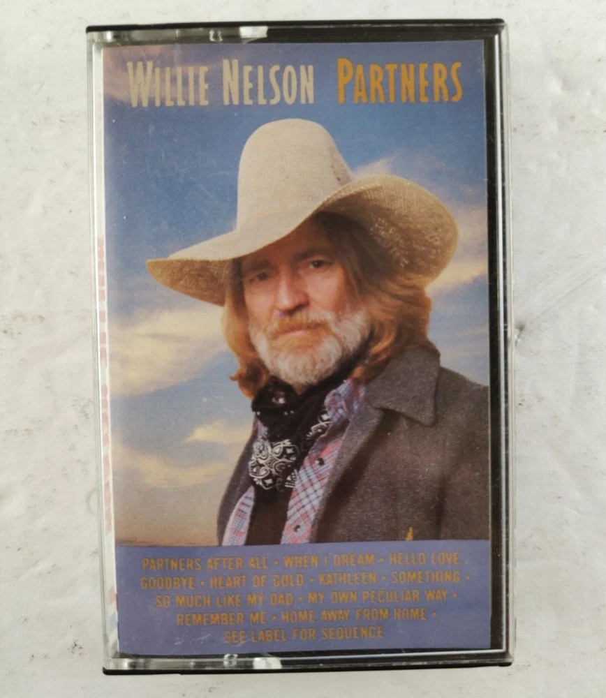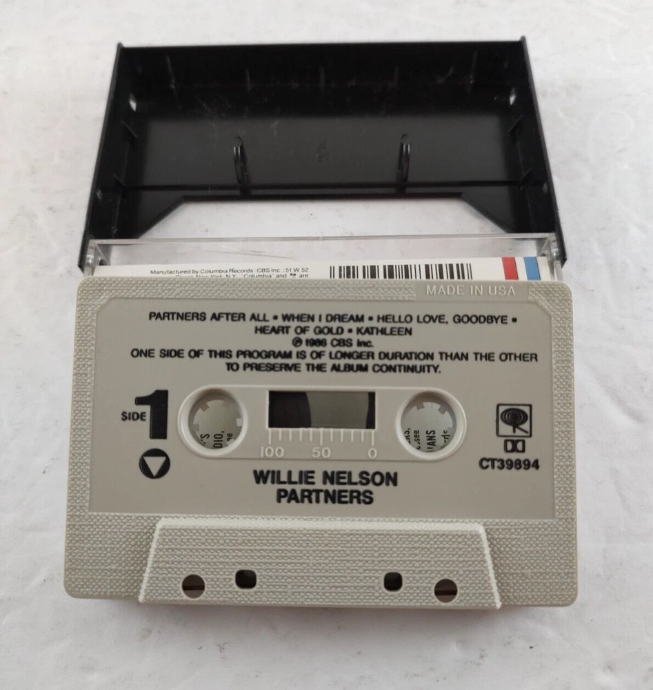 Willie Nelson - Partners Cassette Tape 1986 FCT 39894 Free Ship Label: Columbia – FCT 39894 Format: Cassette, Album Country: US Released: 1986 Genre: Folk, World, & Country Style: Country Tracklist: A1 Partners After All A2 When I Dream A3 Hello Love, Goodbye A4 Heart Of Gold A5 Kathleen B1 Something B2 So Much Like My Dad B3 My Own Peculiar Way B4 Remember Me B5 Home Away From Home