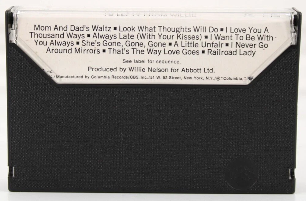 Willie Nelson - To Lefty From Willie Cassette Tape Outlaw Country 1977 Tested CBS WILLIE NELSON - TO LEFTY FROM WILLIE VINTAGE CASSETTE TAPE 1977 ONE OF THE ORIGINAL OUTLAW COUNTRY STARS GREAT COLLECTORS' ITEMS TESTED WORKS GREAT GREAT ADDITION TO YOUR HISTORIC COUNTRY MUSIC COLLECTION COUNTRY MUSIC LEGEND ✨✨✨ THE CASSETTE IS IN VERY GOOD CONDITION, IT WAS TESTED AND WORKS GREAT THE JEWEL CASE IS ALSO IN VERY GOOD CONDITION A FEW MINOR SUPERFICIAL SCRATCHES ON THE CLEAR PLEASE CASE THE INLAY IS VERY GOOD MINOR SIGNS OF AGING PLEASE SEE PICS ✨✨✨✨✨✨✨✨✨✨✨ The VinKris Collection is committed to delivering a great experience! We will ship to you with the greatest of care All items are shipped in sturdy boxes We use packing materials appropriate for the product to help ensure safe delivery Shipments to the United States and Protectorates are handled via USPS International shipments will ship via Ebay's International Shipping Program All packages are shipped within 1 business day of payment We ship daily Monday through Saturday Worry free purchases, we stand behind everything we sell with free 30 day returns We have thousands of happy customers and our goal is 100% customer satisfaction We are happy to answer any questions