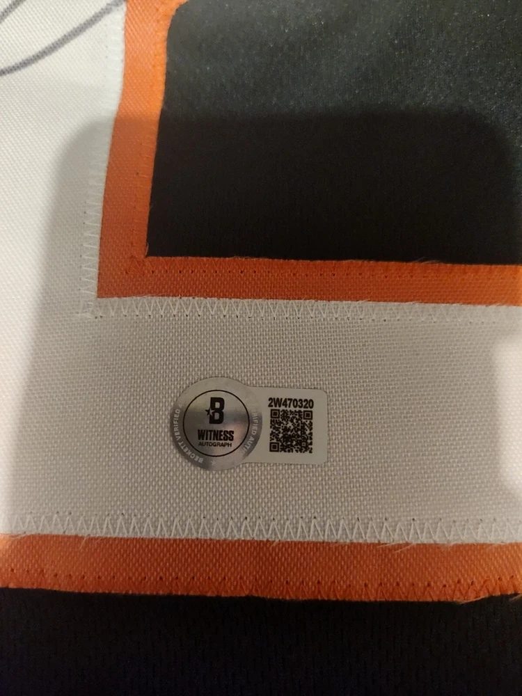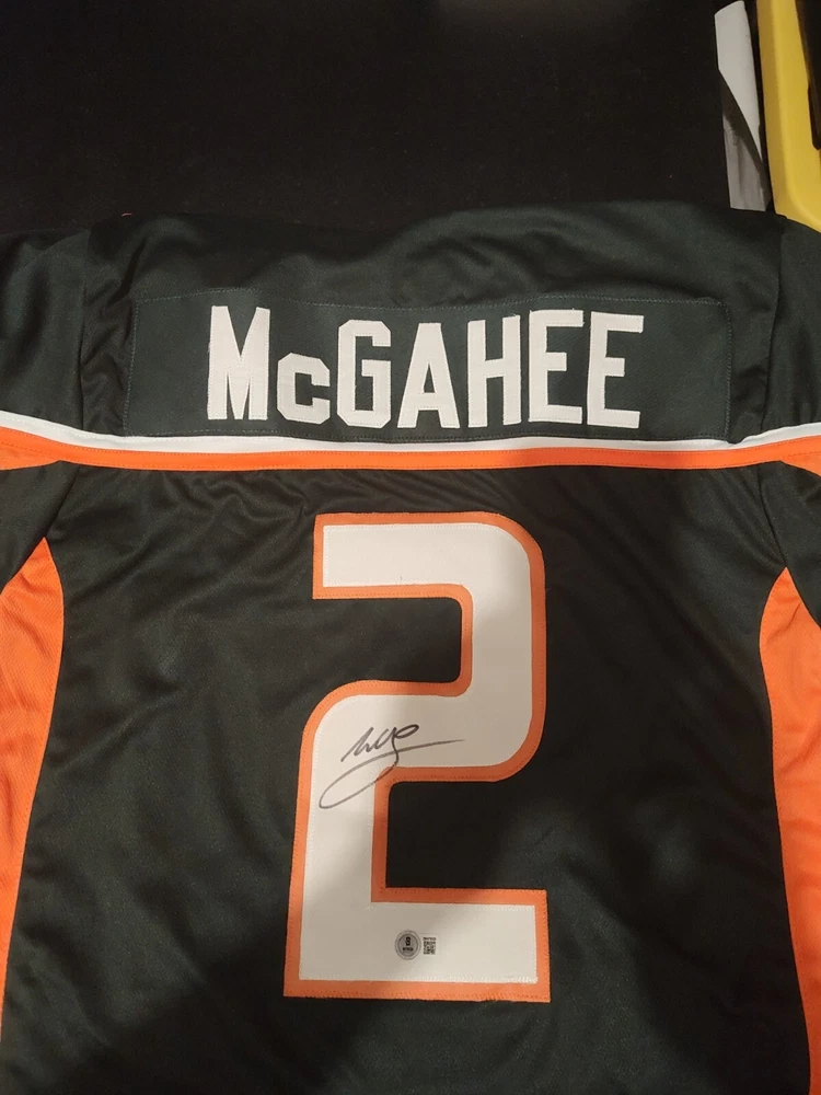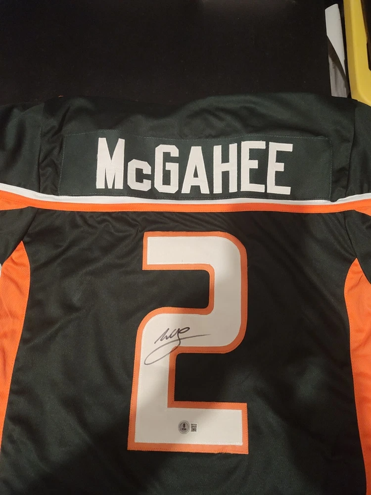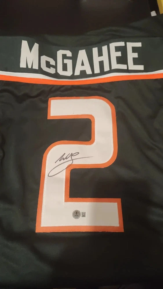 Willis McGahee Signed Jersey (Beckett) Miami Hurricanes Custom jersey with everything sewn on, size XL. Hand-signed by Willis McGahee. The autograph includes an official Beckett Authentication Services serially numbered hologram for authenticity purposes. The signing of this item was witnessed by Beckett. Authentication: Beckett Hologram