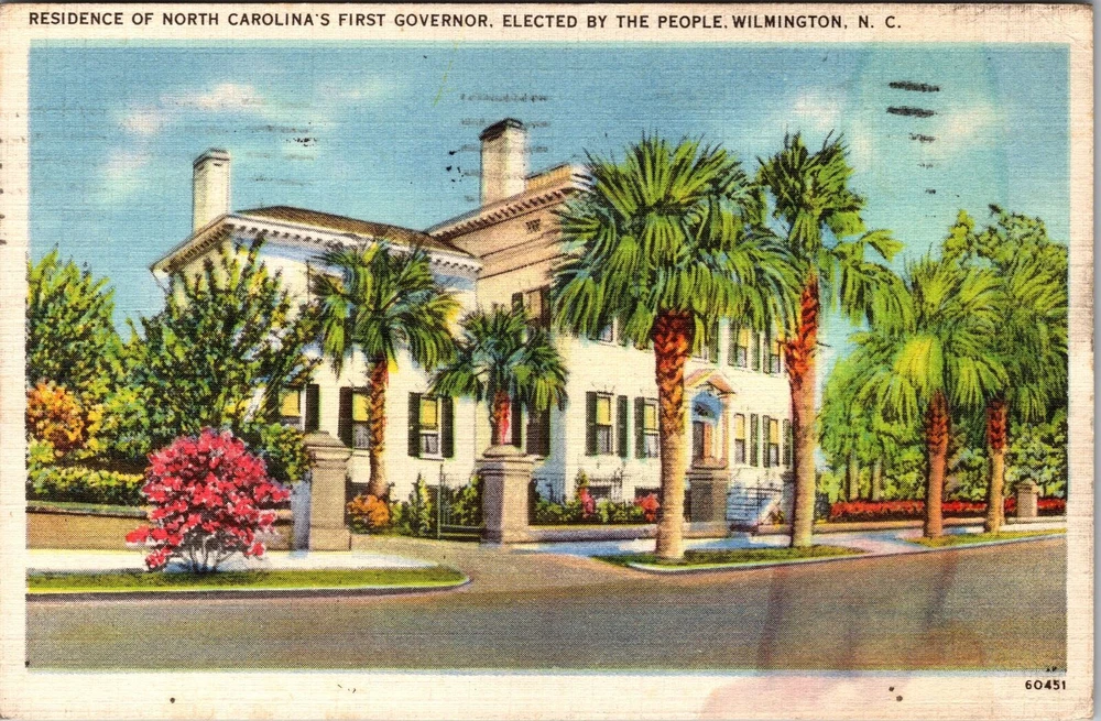 Wilmington NC-North Carolina, 1st Elected Governor's Home Vintagec1940 Postcard