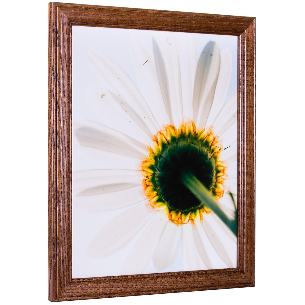 Traditional style; semi-gloss walnut brown stain finish; visible wood grain **COLOR AND GRAIN PATTERN MAY VARY SLIGHTLY WITH EACH FRAME** Frame includes: glass, rigid black backing and pre-attached stamped hanging hardware Frame holds a 4 x 10 inch photo/print/poster (viewable area reduced by .25" on each side due to frame lip) Frame moulding is 0.75 inches wide; solid Ash wood construction Frame is designed for WALL HANGING only (hanging hardware allows for portrait or landscape orientation)