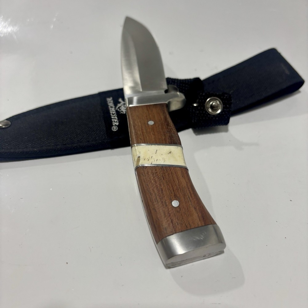 This Winchester Limited Edition knife is a true masterpiece—stunning rosewood and ivory handle, razor-sharp silver blade, and full tang construction make it both beautiful and functional. Perfect for collectors and hunters, it comes with a sheath for easy carry. A must-have for anyone who appreciates fine craftsmanship!
