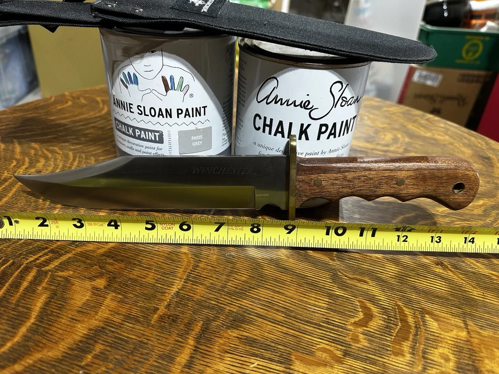 Winchester Knife Lot Lot includes Bowie knife with sheath, knife with sheath. Wooden handle with 2 blades and a 3 blade knife. No nicks or nothing broken. Great for gifts!
