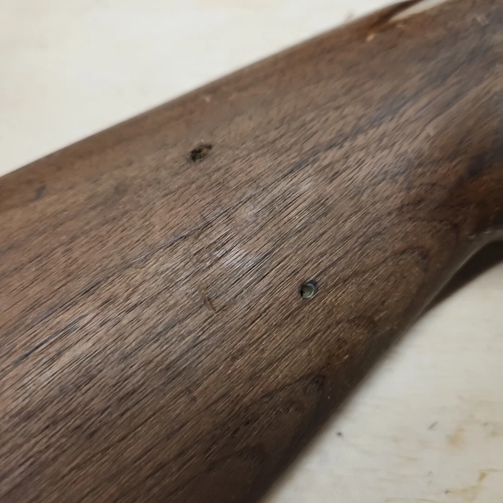 Part: Butt stock and butt plate Make: Winchester Model: 12, 1912 Serial #: N/A Year of Manufacture: N/A Caliber/Gauge: 12 Gauge Barrel: N/A Action: Pump Markings: N/A Finish: Original Overall Condition: Good functional condition, excellent metal to wood fit. Dings and scratches you would expect on working vintage shotgun. It looks like some one drilled some holes on the cheek almost as though a plaque was fitted to it. Review photos carefully.