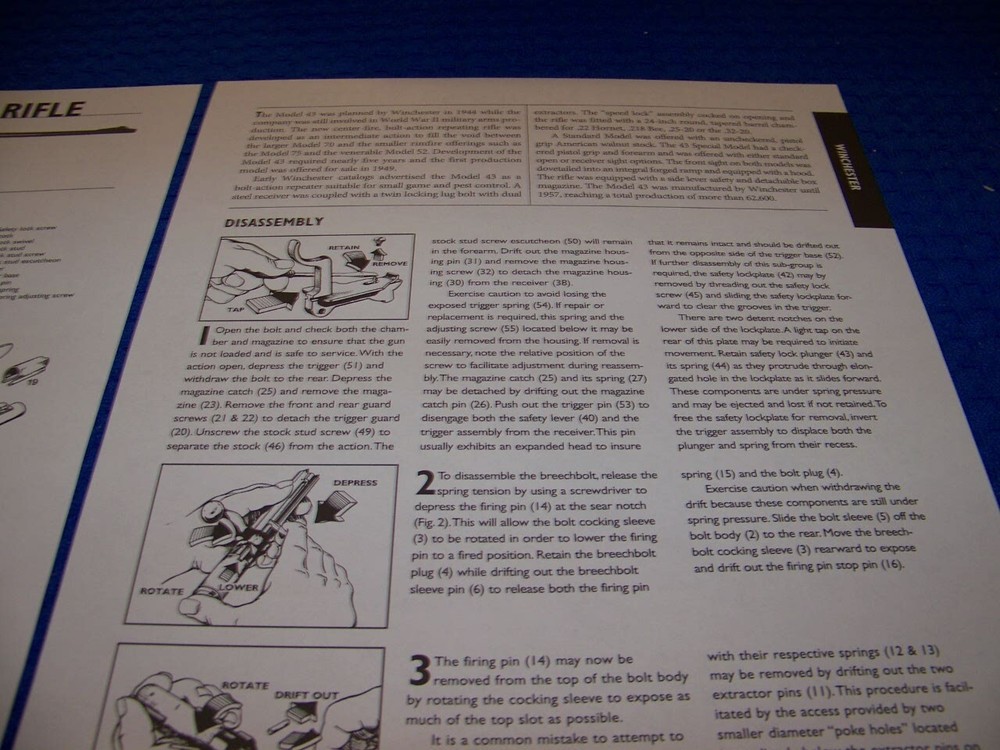 UP FOR SALE IS AN ORIGINAL PRINT 2-PAGE DRAWINGS ON... WINCHESTER MODEL 43 RIFLE (SERIES) (2-PAGES) Page/s size: APROX: 8 1/2" X 11" SUBJECT: .. WINCHESTER MODEL 43 RIFLE (SERIES) . . . . . . . .....PERFECT FOR FRAMING!!! AUTHOR/ARTIST: N/A YEAR: 2009 ORIGINAL PRINT SCALE: N/A ARTICLE FEATURES: EXPLODED VIEW WITH PARTS LEGEND (IF SHOWN)/DETAILS/MAGAZINE (IF APPLICABLE)/SHORT DISASSEMBLY INSTRUCTIONS CONDITION: GREAT-LIGHT COLORING(NORMAL)..NOTE: ** SOLD FOR 2-PAGES DRAWINGS/PROFILES ...ANY OTHER ARTICLE ON BACK OF DRAWINGS/ARTICLE ARE NOT REPRESENTED IN THIS AUCTION!*** (REMEMEBER THESE ARTICLES ARE EXTREMELY OLD AND RARE...SOME MAY HAVE SOME BORDER DISCOLORATION/SMALL EDGE CHIPS/PAGE DISCOLORATION)/BINDING CUTOUTS.....SEE CONDITION AND NOTES LISTED ABOVE AS TO EACH ARTICLE! **THESE ARE AIRCRAFT ARTICLES THAT HAVE BEEN EXTRACTED FROM VINTAGE MAGAZINES/ECT,.. AND ARE INDIVIDUAL PAGES OF EACH SUBJECT AND SOLD AS COMPLETE ARTICLES ON EACH SAID AIRCRAFT AS LISTED ABOVE!.. NOT SOLD AS A COMPLETE MAGAZINE or BOOKLET!!! **all articles are shipped flat on cardboard flat and mail flat in manila envelope to INSURE condition! ** I DO OFFER COMBINED SHIPPING ON MULTIPLE ITEMS PURCHASED