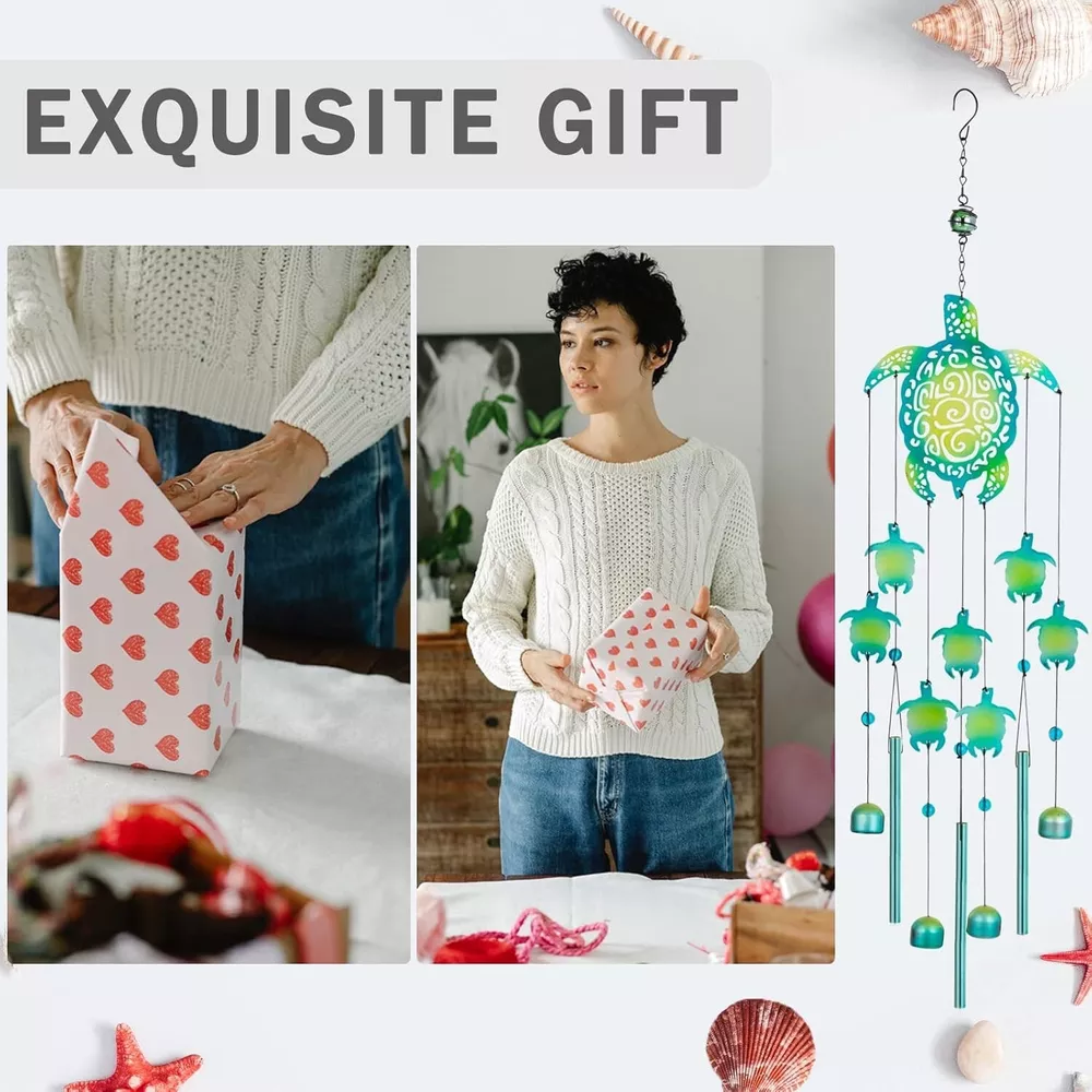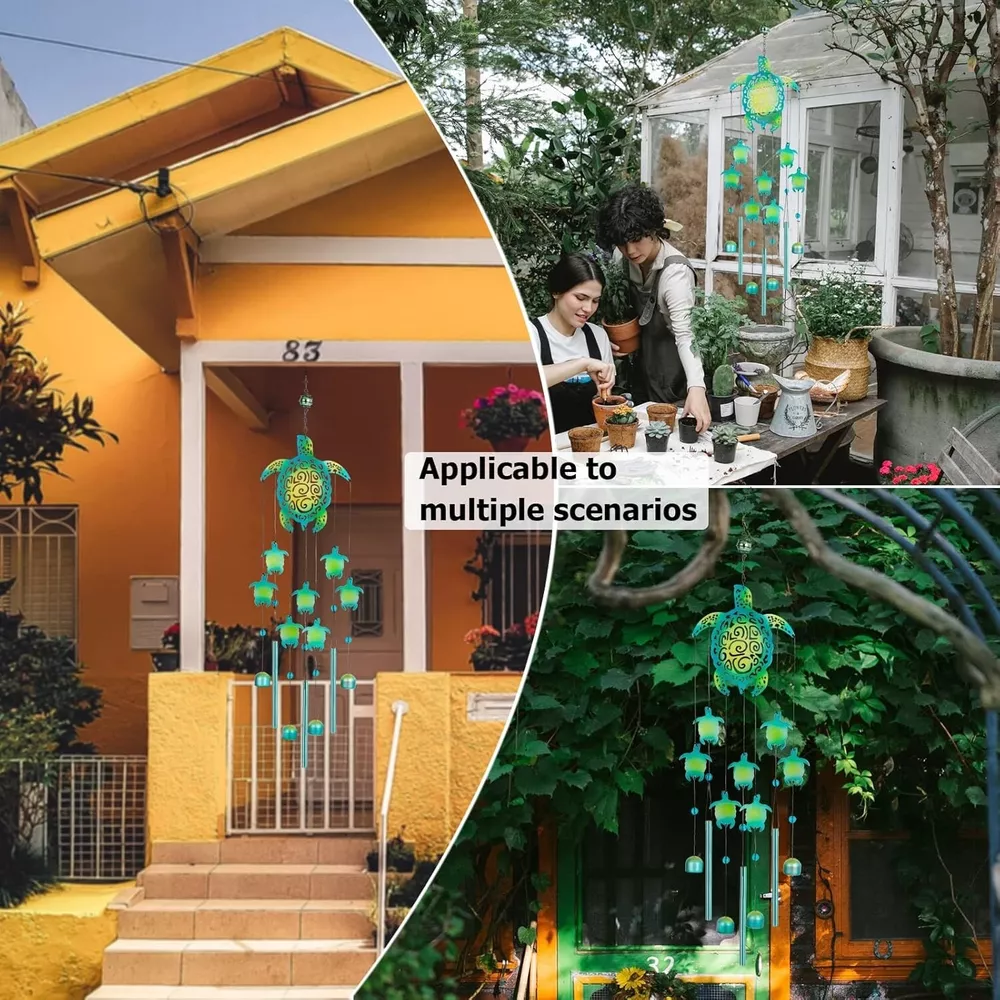 Wind Chimes, Sea Turtle Wind Chimes for Outside, Memorial Gift for Mom, Wind Chimes Outdoor Clearance, Garden Decor, Turtle Lover Gifts Color Green Turtle Material Aluminum Embellishment Bead Style Durable,Unique About this item [ Unique Design ] Our turtle wind chimes are designed for outside, well made of high quality aluminum and iron and durable nylon rope, with a sturdy structure that is not easily rusted or faded. [ Great Gift Ideas ] Sea turtles have a good meaning, it symbolizes longevity and health. Wind chimes are an auspicious object that brings goodness to others. It is a perfect memorial gift for mothers, the elderly in the family, and sea turtle lovers. [ Beautiful Garden Decor ] The wind chimes are mainly colored in bright green, personalized color makes it look more unique. The beads make the wind chimes shine brighter in the sunlight. With it, you can relax in the yard listening to the pleasant chimes and enjoy the beauty of nature. [ Easy to Hang ] Wind chimes can be used immediately without assembly. Each wind chime comes with an S-shaped hook, which is convenient for you to hang in windows, porches, gardens, yards and any other places. [ Satisfactory Service ] If there are quality problems with the wind chimes, please feel free to contact us. So as to give you the best shopping and using experience.