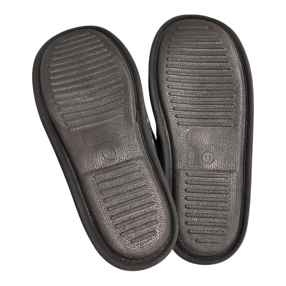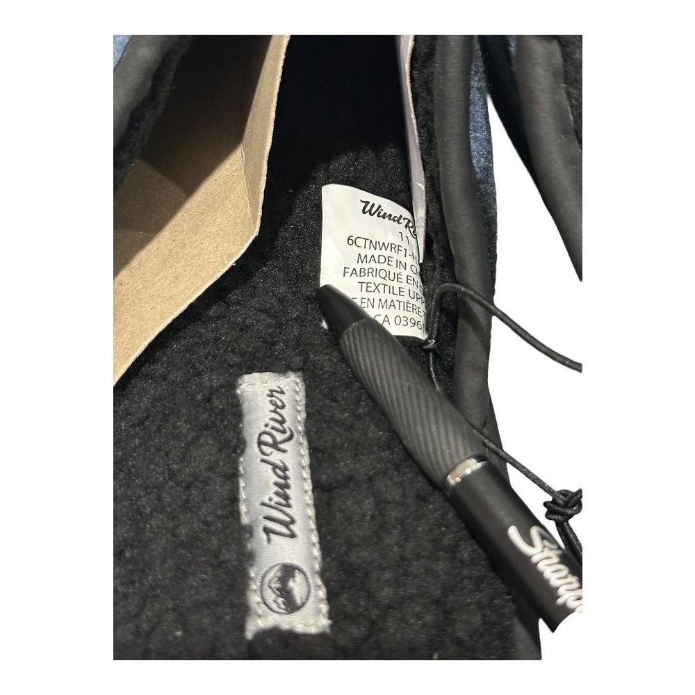 Brand: WindRiver Style: Mens slip-on mule house slippers, Harper model designed for casual indoor wear. Color: Blue and black buffalo plaid fabric upper with black trim and black lining. Size: Mens US 11 (tagged 11.0; size 11 molded on outsole). Materials: Fabric upper, soft fleece/faux shearling-style lining and insole, textured rubber outsole, flat heel under 1 inch. Details: Closed round toe, open-back mule design for easy slip-on comfort, cushioned sherpa-style footbed for warmth, lightweight construction, slip-resistant rubber outsoles suitable for indoor floors and quick trips outside. Tags and identifiers: WindRiver woven logo labels on footbeds; retail hang tag attached with style/model code 6CTNWRF1-HARPER and color name "Blue Buffalo Plaid"; made in China; non-vintage, standard width. Special notes: New with tags house shoes intended for cozy everyday lounging and home comfort; original shoebox not included.