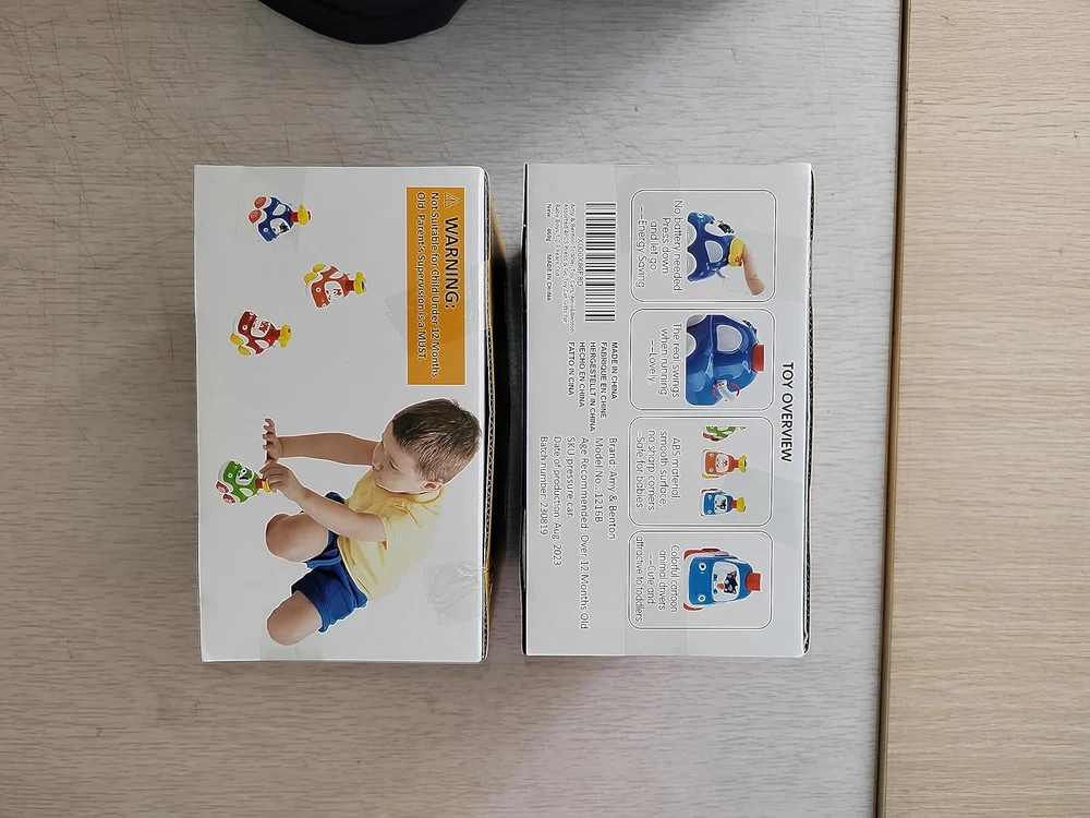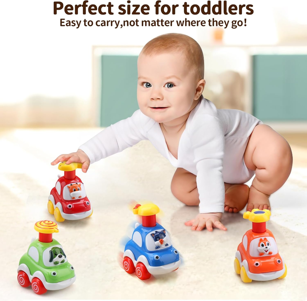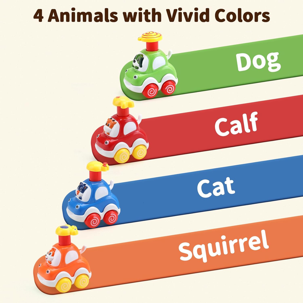 【Eye Catching Colors:】These toddler toy cars are designed in vivid colors that are highly attractive to young kids, stimulating their recognition and imagination, making them ideal for early development. 【Baby & Toddlers Cars:】Made from safe, non-toxic ABS material, these cars are perfectly sized for little hands, featuring smooth edges that prevent any risk of injury. 【Cartoon Toy Cars:】The set includes four adorable animal designs: a calf, dog, squirrel, and cat, each crafted to be cute and lovable, capturing the hearts of toddlers. 【Press and Go Cars:】These toy cars operate without batteries, promoting energy-saving play while being environmentally friendly. 【HIGH QUALITY & BEAUTIFUL COLOR BOX:】Packaged in a high-quality, attractive box, these cars make an excellent choice for birthday gifts or special occasions. Product Description The Amy&Benton Baby Toy Cars are not just toys; they are an essential part of early childhood development. Designed for toddlers aged 1 to 3 years, these colorful cars encourage imaginative play, helping children develop cognitive and motor skills. The vibrant colors and cute animal designs make these cars visually appealing, ensuring that they capture the attention of young children, stimulating their curiosity and engagement during playtime. Safety is a top priority for parents, and the Amy&Benton cars deliver on this front. Constructed from non-toxic ABS material, these toys are safe for little hands to grasp and play with. Each car is designed with smooth edges, eliminating the risk of cuts or scrapes, making them suitable for even the youngest of toddlers. The perfect size ensures that they are easy to handle, promoting independent play and exploration. One of the standout features of these toy cars is their press-and-go mechanism, which requires no batteries. This not only makes them an eco-friendly choice but also encourages kids to engage in active play by pushing the cars to make them go. The set comes beautifully packaged, making it a thoughtful gift for birthdays or holidays. With the Amy&Benton Baby Toy Cars, parents can rest assured that they are giving a gift that is both entertaining and beneficial for their child's development. Vivid colors to stimulate imagination Safe, non-toxic ABS material Includes four cute animal designs Press and go mechanism, no batteries needed Perfectly sized for toddlers’ hands Smooth edges for added safety Encourages cognitive and motor skill development Environmentally friendly toy choice Attractive packaging for gifting Recommended for ages 18 months to 10 years When comparing the Amy&Benton Baby Toy Cars to other similar products, such as traditional battery-operated toy cars, the advantages become clear. While battery-operated cars may provide more speed and features, they often come with the downside of requiring batteries, which can be inconvenient and less eco-friendly. The press-and-go mechanism of the Amy&Benton cars not only saves energy but also encourages children to engage physically with the toy, promoting active play rather than passive observation. Additionally, many competitor products may not prioritize safety to the same extent as the Amy&Benton cars, which are made from non-toxic materials and designed with smooth edges. This focus on safety makes them a more suitable option for toddlers, who are naturally curious and prone to exploring their environment. Overall, the combination of captivating designs, safety features, and developmental benefits makes the Amy&Benton Baby Toy Cars a superior choice in the realm of developmental baby toys.