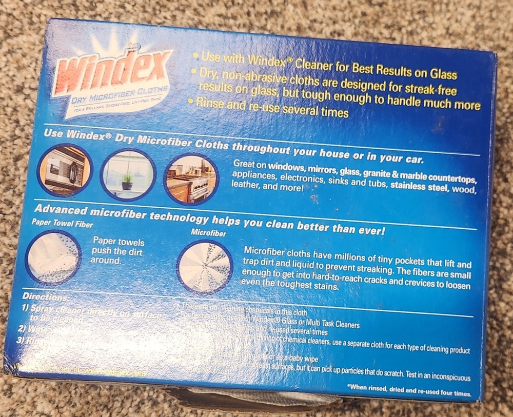 Windex Dry Microfiber Cloths 12 Pack 11x11 Discontinued Cleaning Disposable New. Condition is New. Shipped with USPS Ground Advantage.