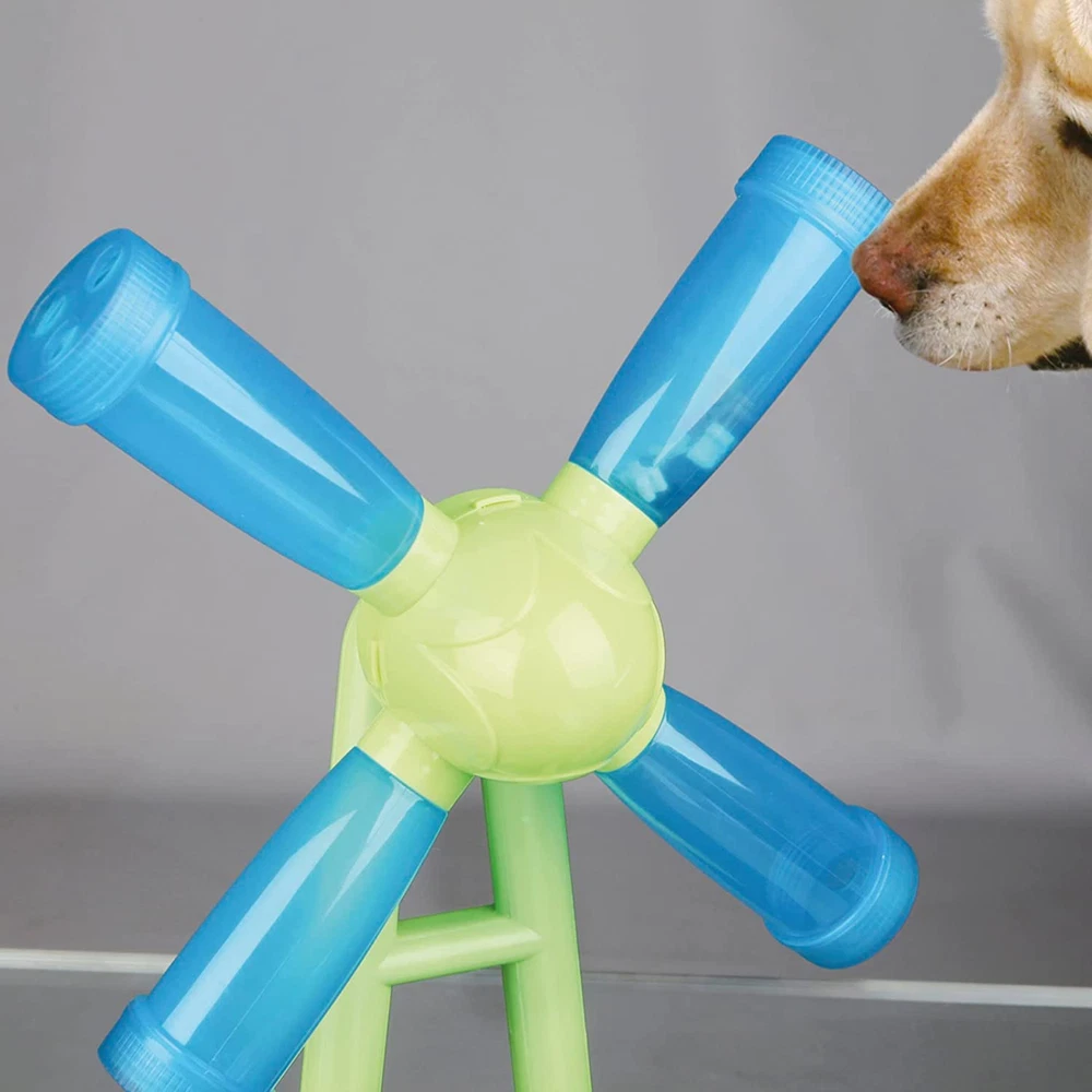 As one of our most popular dog enrichment toys, the TRIXIE Windmill interactive dog puzzle will keep your dog focused and mentally stimulated as they search and sniff out tasty treats; great dog accessory for a boredom buster Did you know 15 minutes of mental stimulation equals 30 minutes of physical exercise for dogs? Our beginner level 1 interactive dog puzzle toys are a great way to introduce puppies and older dogs to problem-solving and dog puzzle toys Spin & Win; this interactive dog treat puzzle is perfect for introducing your pup to puzzles; as your puppy spins the Windmill, his rewards will appear; it comes with 2 sets of lids for the tubes; increase the difficulty by mixing lids BPA-Free and Lead-Free; TRIXIE Dog Activity interactive dog toys are designed with your pet's health in mind starting with safe materials you can trust; easy to clean with warm water and soap between uses Included with our dog puzzle toys are helpful tips and tricks to assist in optimal training; also, never leave toys with unsupervised pets - no toy is indestructible TRIXIE Dog Activity Windmill interactive dog puzzle toy provides fun and mental stimulation for any beginner. This level 1 puzzle product for dogs features four tubes to fill with your pet’s favorite treats and kibble and let the challenge begin. Your dog will get excited about puzzles! The non-slip rubber feet keep the game in place as your dog plays and explores. We’ve included an instructional booklet with tips and tricks for challenging and training dogs of all ages through play. Suitable for dogs of all ages and activity levels. Made from tough plastic parts and pet-safe materials that are BPA and Lead-free. Hand wash with soap and warm water to clean between uses. Your pet should be supervised with this toy.