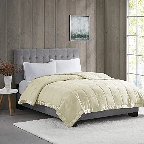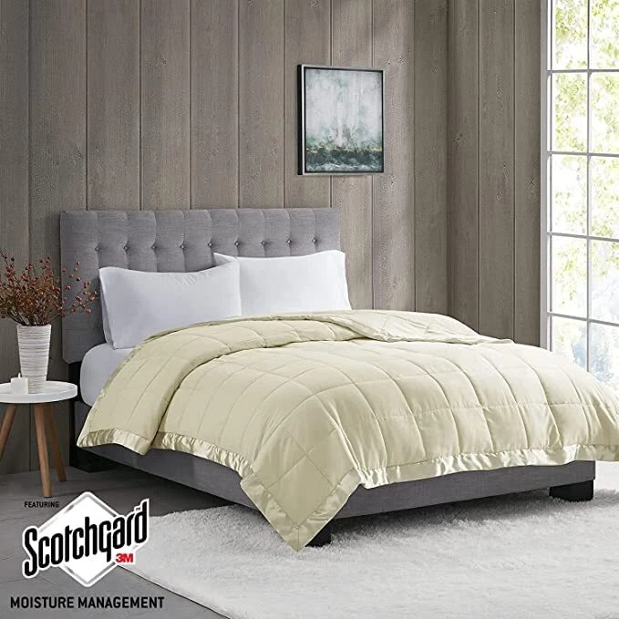 For year round warmth, the Windom microfiber down alternative blanket is the perfect fit. This microfiber blanket features a 3M Scotchgard Moisture Management Treatment that wicks away moisture, keeping you warm and dry through the night. Down alternative filling provides extra warmth and softness, while the sewn-through box-quilting prevents the fill from shifting. The satin binding elegantly frames this blanket, creating a rich finished edge that is perfect for displaying on your bed. Machine washable for easy care, this microfiber blanket will keep you warm and comfortable through all seasons. NEW & TRENDY - Search no further for your new cozy blanket, Windom microfiber blanket offers colors complimenting the luxurious double sided box quilting design accented with satin binding. Brushed microfiber fabric offers a super soft and lofty cover to keep you warm and cozy, while still giving a lightweight and wrinkle resistant design. BETTER SLEEP - We simply offer you a really soft and cozy high quality brushed microfiber blanket. It features a 3M Scotchgard Moisture Management Treatment that wicks away moisture, keeping you warm and dry through the night. The treatment also helps most stains come out in the wash. ALL SEASON - Our all season blanket offers a soft and lightweight material perfect Summer blanket and warm enough for Spring season. Collection aims to offer you a better quality sleeping experience. In the winter our blanket can be the perfect layering piece, adding a decorative element of soft texture for extra warmth and coziness during the cold season MAKE IT LAST - It will last if you maintain it by using machine wash cold on gentle cyle only, and tumble dry on low heat. And NO BLEACH. Commercial size front loading washer is recommended INCLUDES - 1 Blanket: 90"x90"