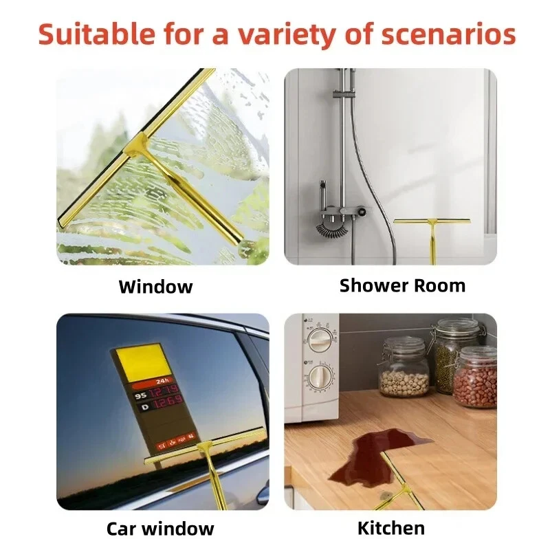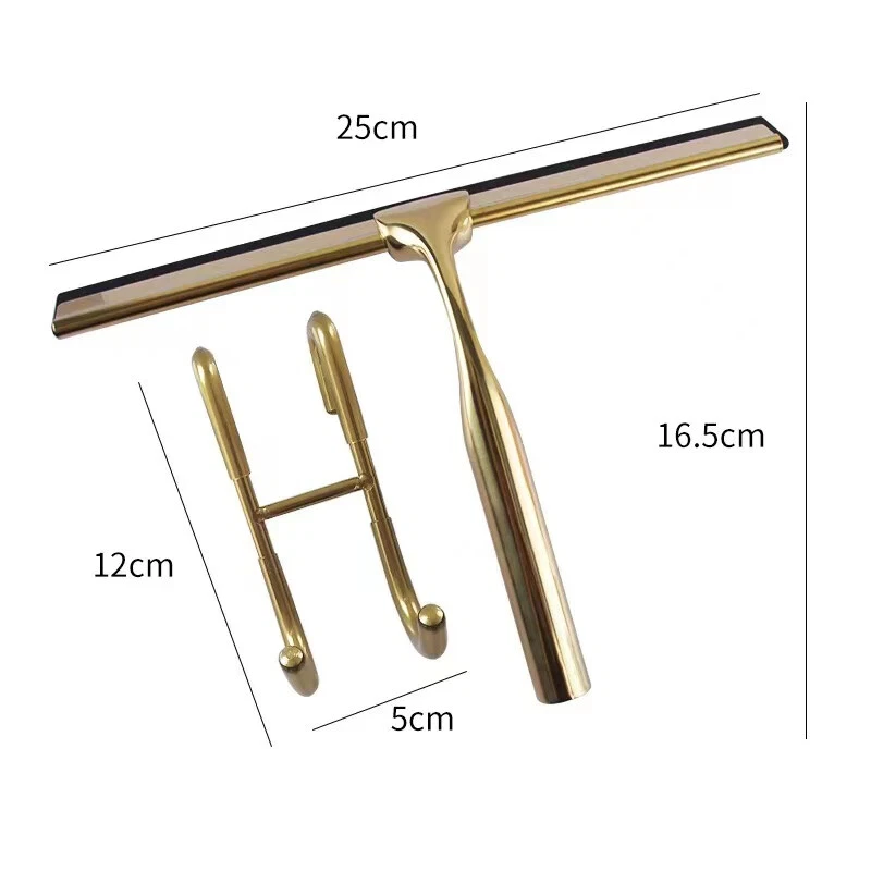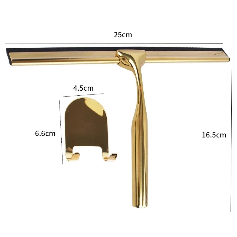 Specification: Material: Stainless Steel, Silicone Squeegee Size: approx.25x16.5cm/9.84x6.50inch Hook Size: approx.4.5x6.6cm/1.77x2.60inch(1/2) 12*5cm/4.7*1.97inch(3) Color: Golden Package list: Wiper *1