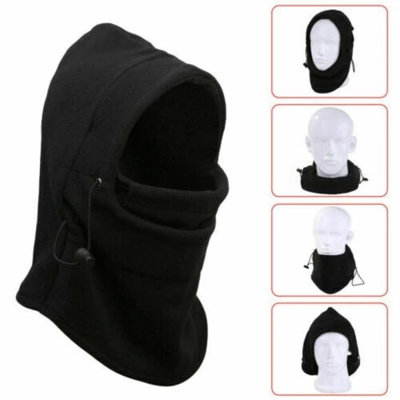ONE Piece Balaclava Full Face Hooded Masks for Cold Weathers New Unisex Windproof Neck Guard Warm Half Face Mask for ski bicycle motorcycle snowboard. This neck face mask is ideal for motorcyclists, cyclists, skiing, fishing, hiking and so much more. Brand New and High Quality! Full Face and Neck Coverage Designed Designed for both Men and Women. Material: 100 % Polyester Protects you from the cold weather in the winter. Soft, warn and comfortable materials BLACK BRAND NEW WITH TAGS AND IN PACKAGE SHIPS SAME DAY OF PAYMENT