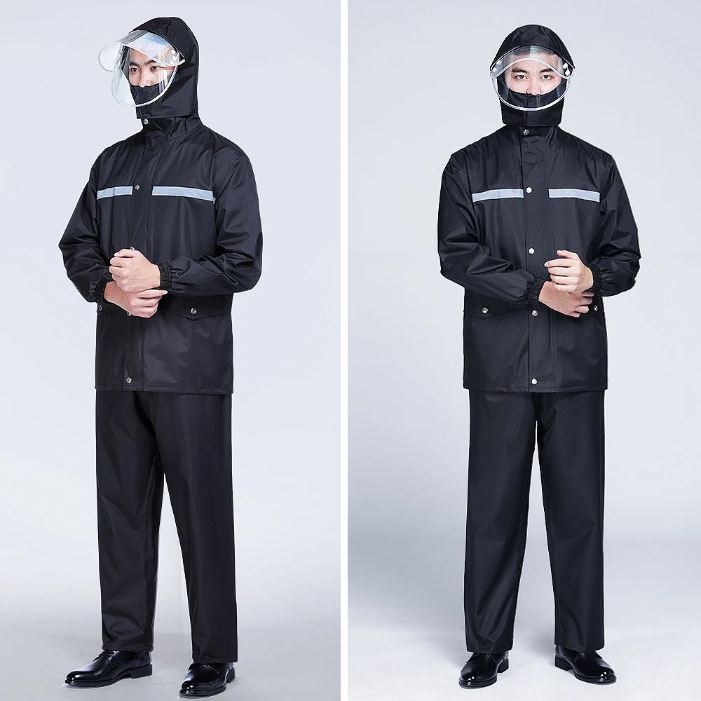 Feature: 1. This top and bottom set is comfortable and easy to move around in rainy days. It has excellent water repellency and prevents water and dirt. 2. Elastic cuffs adjust to fit your wrist and prevent rain from seeping. 3. This rainwear features a reflective tape design for added safety. 4. Used for a wide variety of occasions, including commuting to work or school, cycling, and motorcycle, as well as outdoor activities such as camping, fishing, hiking, etc. 5. There is a removable double-layer waterproof and rainproof transparent mask at the front of the hat to block the rain but still provide a clear view. 6. There are two oversized waterproof pockets on the front that allow you to carry more items on rainy days. Specification: 1 Package List: 1